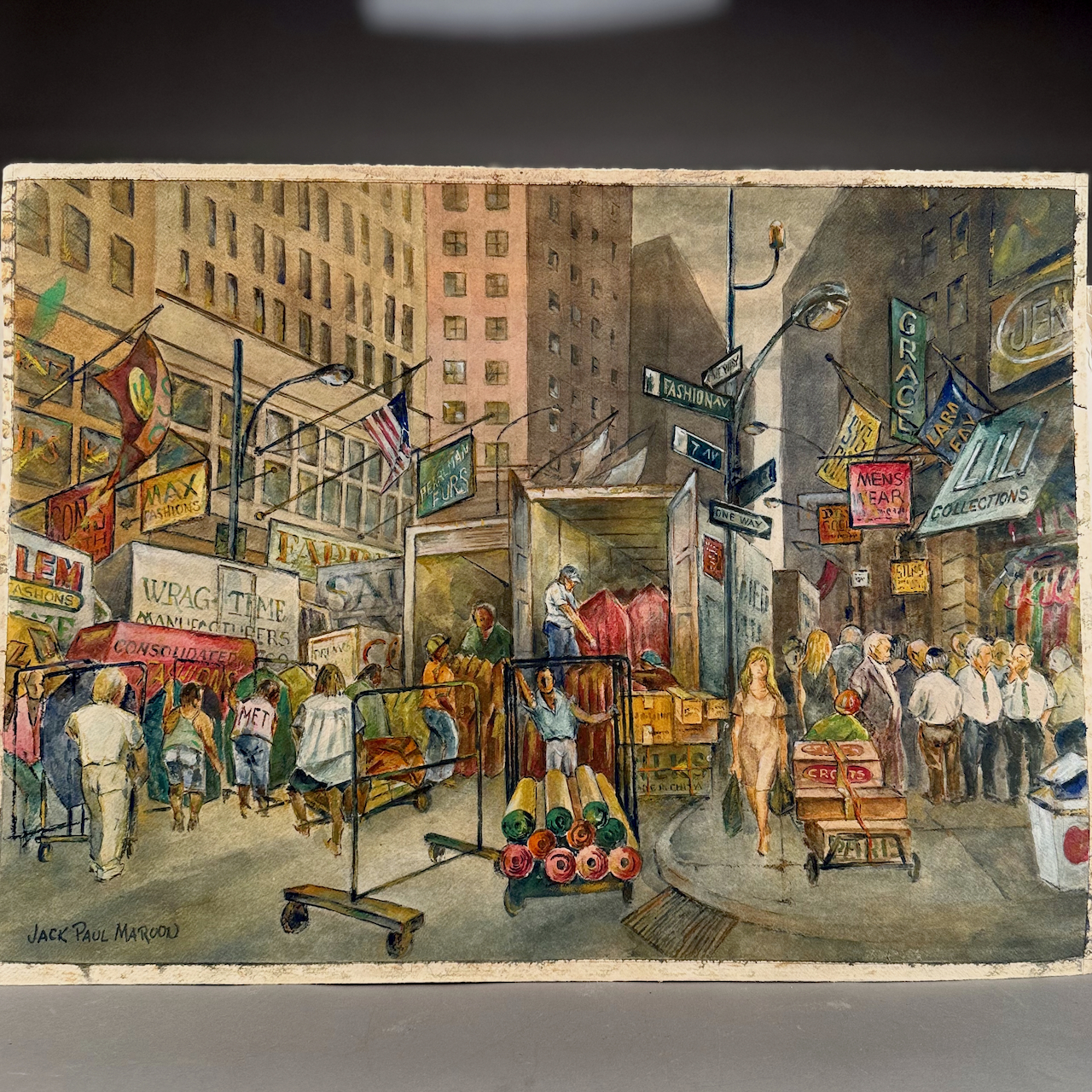 Home / ESTATE COLLECTION OF AMERICAN ARTIST JACK PAUL MAROON DECEMBER 19 AT 6PM / LOT 081 “FASHION AVE AND 7TH AVE”, WATERCOLOR, SIGNED, UNFRAMED. 22 X 30 LOT 081 “FASHION AVE AND 7TH AVE”, WATERCOLOR, SIGNED, UNFRAMED. 22 X 30 Place a Bid Category: ESTATE COLLECTION OF AMERICAN ARTIST JACK PAUL MAROON DECEMBER 19 AT 6PM Tag: auction Related products LOT 016 6 PCS OF STERLING SILVER: (1) 6″(D) PLATE BY TOWLE. (2) 3-1/2 FOOTED CREAMER BY POOLE. (3) 4″(D) FOOTED BOWL BY SHREVE, CRUMP & LOW CO (4) 7″(L) FOOTED GRAVY BY J.E. CALDWELL & CO (5) 4″ CREAMER BY DOMINICK & HAFF (6) 6-3/4″(W) DISH BY TOWLE. 25.2 OZT LOT 004 133 PC STERLING SILVER FLATWARE SET IN THE “KING PATTERN. 190 OZT (EXCLUDING 12 KNIVES), MONOGRAMMED LOT 020 STERLING SILVER HINGED SQUARE BOX, LONDON, 1806, MAKERS MARK RH?, THE LID WITH A REPOUSSE SCENE OF 2 MEN PLAYING A BOARD GAME. 1-1/4″(H), 4″(W), 4″(D) LOT 023 STEPHEN G. MANIATTY, ‘SAWMILL’, OIL ON CANVAS, SIGNED LOWER RIGHT, FRAMED WITH AN AWARD PLAQUE “GRUMBACHER ARTISTS MATERIAL AWARD/GRAND NATIONAL EXHIBITION/NEW YORK CITY – 1965”. 20 X 30