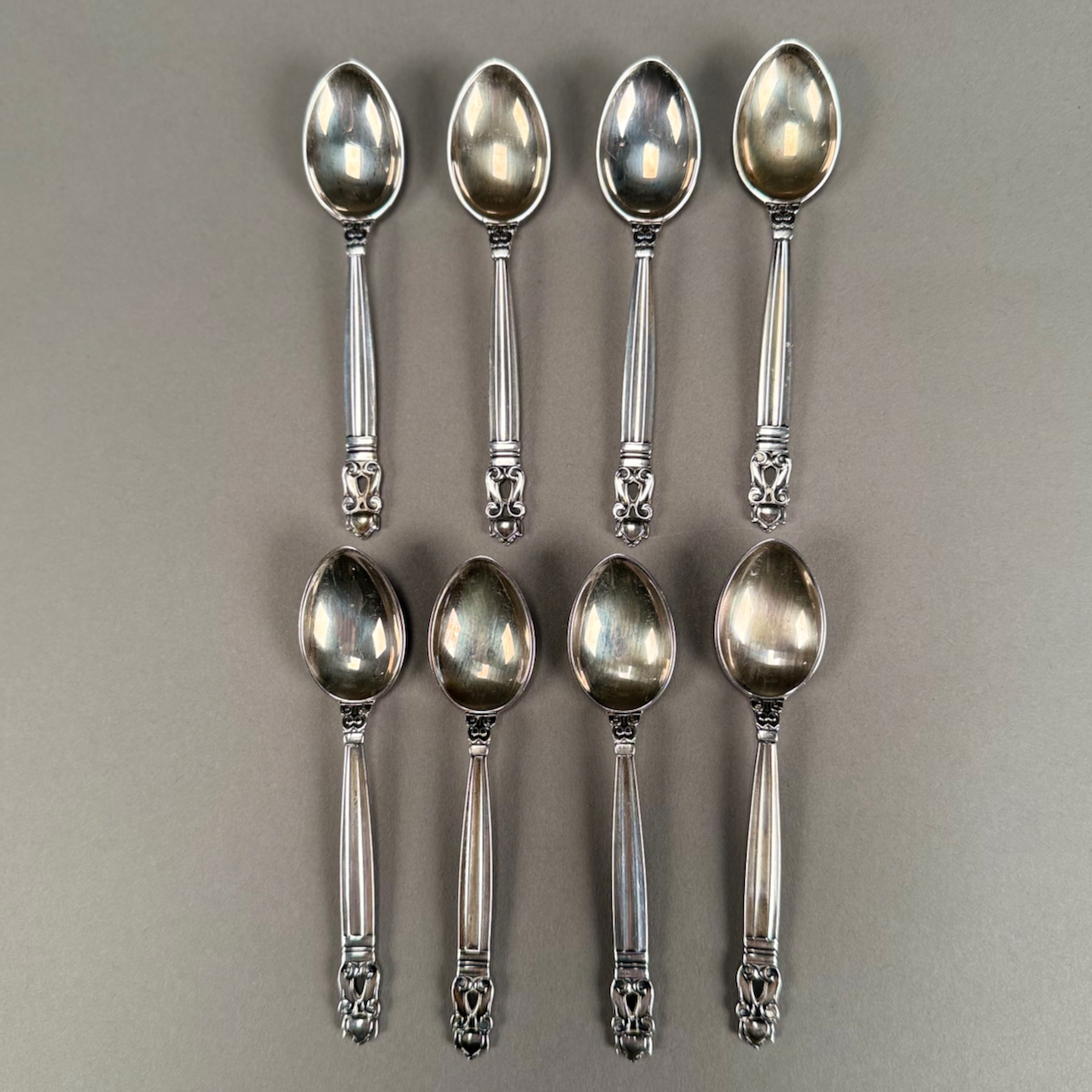 Home / ANTIQUE ESTATE AUCTION - FRI MARCH 27 AT 6 PM / LOT 083 GEORG JENSEN SET OF 8, 4-1/2”(L) STERLING SILVER SPOONS IN THE ACORN PATTERN. 4 OZT LOT 083 GEORG JENSEN SET OF 8, 4-1/2”(L) STERLING SILVER SPOONS IN THE ACORN PATTERN. 4 OZT Place a Bid Category: ANTIQUE ESTATE AUCTION - FRI MARCH 27 AT 6 PM Tag: auction Related products LOT 011 4 PCS OF ENGLISH STERLING SILVER. (1) EXPANDING TOAST RACK, 1901-1902, LONDON, 3″(H). (2) 3″ TEA CADDY SPOON, 1796-7, LONDON. (3) 7″ RETICULATED 2 HANDLED DISH, 1906-7, BIRMINGHAM. (4) 2″(H) TANKARD SHAPED MUSTARD WITH COBALT LINER, 1902-3, BIRMINGHAM. 12.6 OZT (W/O LINER) LOT 008 11 STERLING SILVER PLATES BY GORHAM. 6″(D), 27.8 OZT LOT 020 STERLING SILVER HINGED SQUARE BOX, LONDON, 1806, MAKERS MARK RH?, THE LID WITH A REPOUSSE SCENE OF 2 MEN PLAYING A BOARD GAME. 1-1/4″(H), 4″(W), 4″(D) LOT 016 6 PCS OF STERLING SILVER: (1) 6″(D) PLATE BY TOWLE. (2) 3-1/2 FOOTED CREAMER BY POOLE. (3) 4″(D) FOOTED BOWL BY SHREVE, CRUMP & LOW CO (4) 7″(L) FOOTED GRAVY BY J.E. CALDWELL & CO (5) 4″ CREAMER BY DOMINICK & HAFF (6) 6-3/4″(W) DISH BY TOWLE. 25.2 OZT