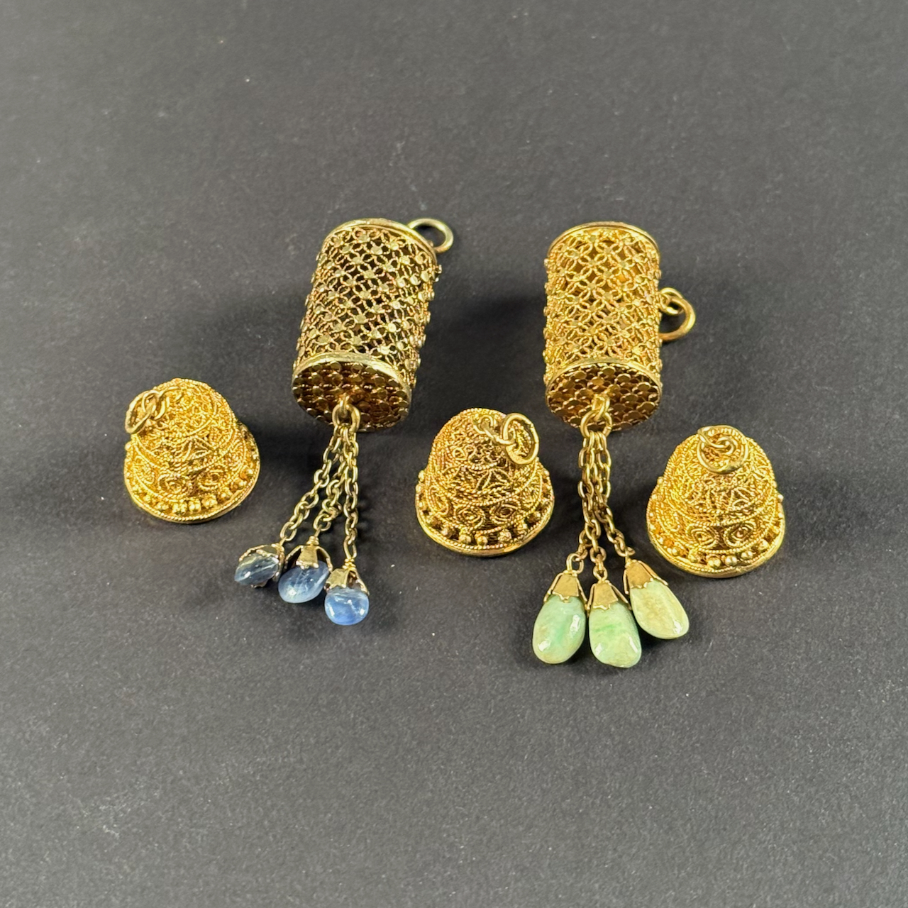 Home / ANTIQUE ESTATE AUCTION - FRI FEBRUARY 20 AT 6 PM / LOT 086 PAIR OF FILIGREE GOLD DANGLE EARRINGS WITH JADE DROPS ALONG WITH 3 FILIGREE BELL CHARMS, ALL UNMARKED. 4.7 DWT LOT 086 PAIR OF FILIGREE GOLD DANGLE EARRINGS WITH JADE DROPS ALONG WITH 3 FILIGREE BELL CHARMS, ALL UNMARKED. 4.7 DWT Place a Bid Category: ANTIQUE ESTATE AUCTION - FRI FEBRUARY 20 AT 6 PM Tag: auction Related products LOT 017 CONTINENTAL SILVER (.800) DRESSER BOX MARKED ON BASE ‘BEUTHNER’. 3-1/4″(H), 5-1/2″(W) X 4″(D), 8 OZT LOT 015 42 PC STERLING FLATWARE SET BY LUNT IN THE ‘WILLIAM & MARY’ PATTERN, NO MONOGRAM. 34.5 OZT (W/O 12 KNIVES) LOT 009 48 PC STERLING SILVER FLATWARE SET IN THE “KING GEORGE” PATTERN BY GORHAM, 57 OZT (WITHOUT 16 KNIVES) MONOGRAMMED LOT 008 11 STERLING SILVER PLATES BY GORHAM. 6″(D), 27.8 OZT