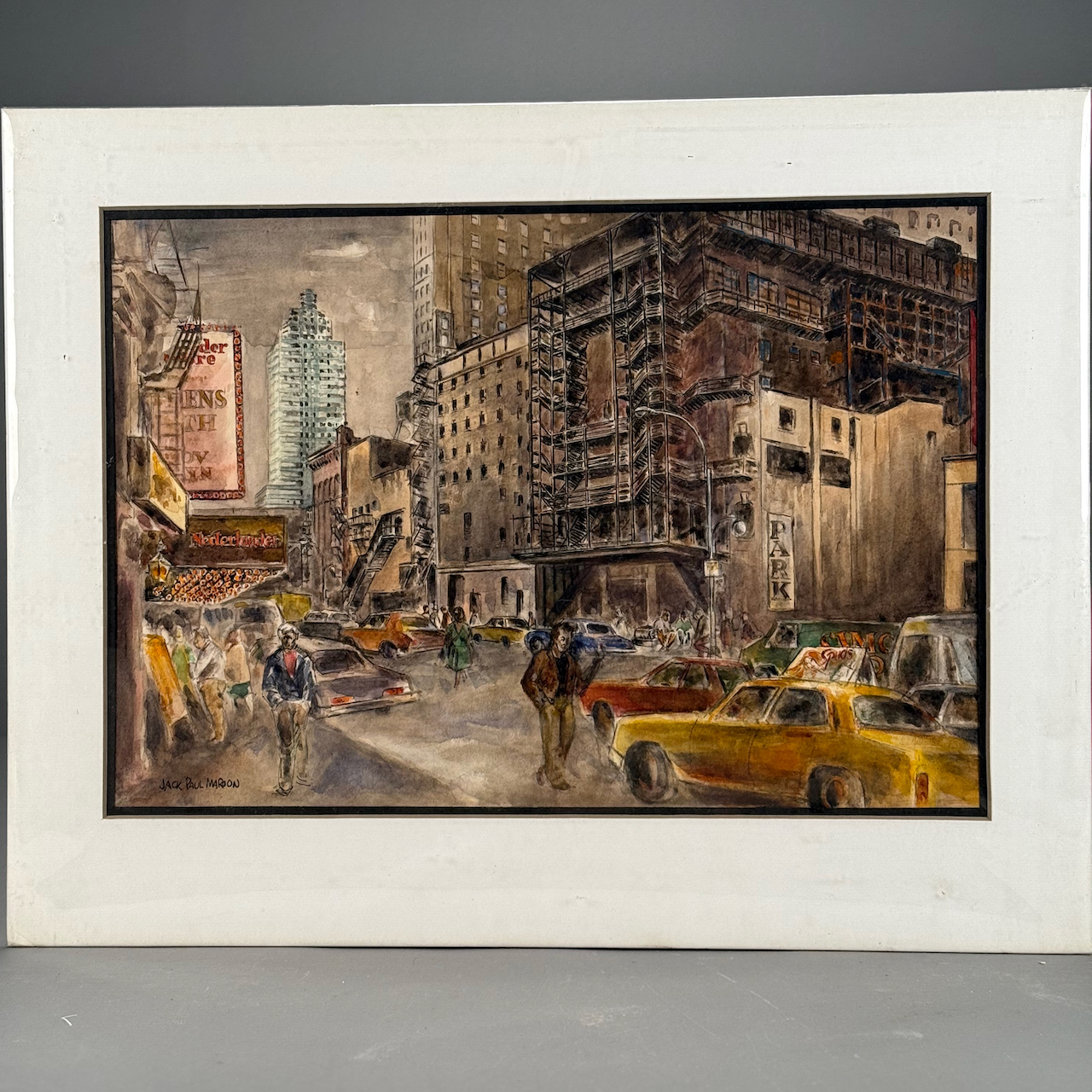 Home / ESTATE COLLECTION OF AMERICAN ARTIST JACK PAUL MAROON DECEMBER 19 AT 6PM / LOT 090 BUSY STREET-NYC, WATERCOLOR, SIGNED. 14 X 21 SIGHT SIZE, IN MAT LOT 090 BUSY STREET-NYC, WATERCOLOR, SIGNED. 14 X 21 SIGHT SIZE, IN MAT Place a Bid Category: ESTATE COLLECTION OF AMERICAN ARTIST JACK PAUL MAROON DECEMBER 19 AT 6PM Tag: auction Related products LOT 022 STEPHEN G. MANIATTY, ‘BUCKET OF POSIES’, OIL ON CANVAS, SIGNED LOWER RIGHT, FRAMED. 38 X 36 LOT 005 PAIR OF STERLING SILVER CANDELABRAS BY ARROWSMITH, WEIGHTED IN 2 PARTS. 14-1/2″(H) (1 REPAIRED) LOT 009 48 PC STERLING SILVER FLATWARE SET IN THE “KING GEORGE” PATTERN BY GORHAM, 57 OZT (WITHOUT 16 KNIVES) MONOGRAMMED LOT 023 STEPHEN G. MANIATTY, ‘SAWMILL’, OIL ON CANVAS, SIGNED LOWER RIGHT, FRAMED WITH AN AWARD PLAQUE “GRUMBACHER ARTISTS MATERIAL AWARD/GRAND NATIONAL EXHIBITION/NEW YORK CITY – 1965”. 20 X 30
