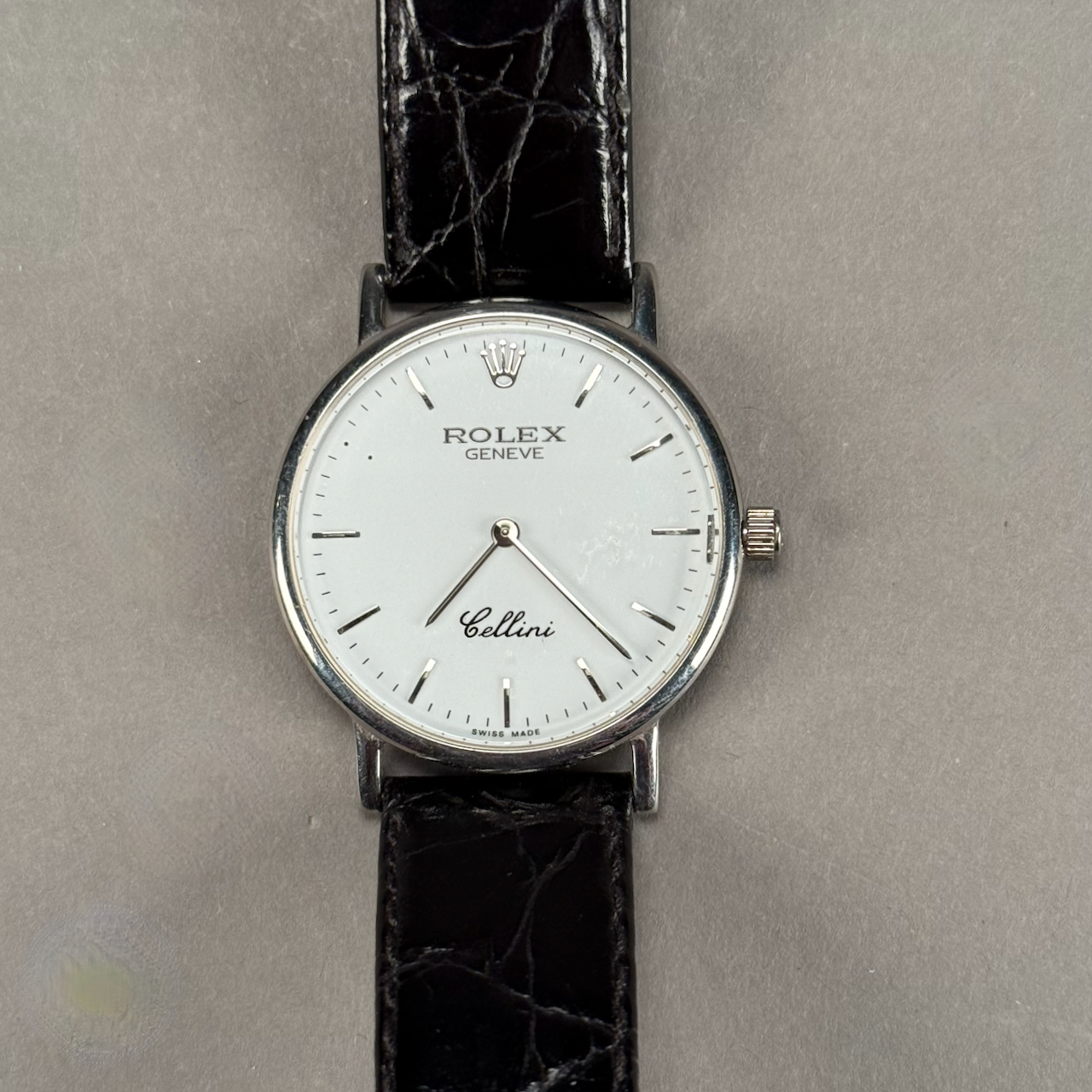 Home / ANTIQUE AUCTION - FRI NOVEMBER 7 AT 6 PM / LOT 090 ROLEX “CELLINI” WRISTWATCH, THE BACK MARKED “ROLEX OYSTER PERPETUAL DATE JUSAV 8283021” LOT 090 ROLEX “CELLINI” WRISTWATCH, THE BACK MARKED “ROLEX OYSTER PERPETUAL DATE JUSAV 8283021” Place a Bid Category: ANTIQUE AUCTION - FRI NOVEMBER 7 AT 6 PM Tag: auction Related products LOT 017 CONTINENTAL SILVER (.800) DRESSER BOX MARKED ON BASE ‘BEUTHNER’. 3-1/4″(H), 5-1/2″(W) X 4″(D), 8 OZT LOT 001 PAIR OF STERLING SILVER COLUMN CANDLESTICKS BY GORHAM MARKED A3207 EACH HAVING REMOVABLE BOBECHES. 10-1/4″(H) LOT 021 OSCAR BERNINGHAUS, ‘THE ROAD TO TAOS’, OIL ON CANVAS, SIGNED LOWER RIGHT, GILT FRAME WITH ARTIST PLAQUE. ON REVERSE OF FRAME IS A PENNSYLVANIA ACADEMY OF THE FINE ART LABEL FOR THEIR 109TH ANNUAL ART EXHIBITION WITH TITLE AND ARTIST (1914). 24 X 36 LOT 015 42 PC STERLING FLATWARE SET BY LUNT IN THE ‘WILLIAM & MARY’ PATTERN, NO MONOGRAM. 34.5 OZT (W/O 12 KNIVES)