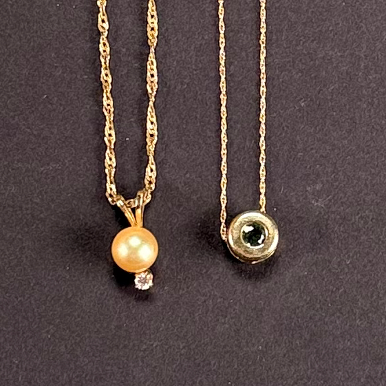 Home / ANTIQUE ESTATE AUCTION - FRI FEBRUARY 20 AT 6 PM / LOT 091 14K YG NECKLACE WITH PEARL PENDANT. 2.3 DWT, (3.6 G), .13 OZT AND A 10K YG NECKLACE WITH PENDANT, .7 DWT, (1.1 G), .04 OZT LOT 091 14K YG NECKLACE WITH PEARL PENDANT. 2.3 DWT, (3.6 G), .13 OZT AND A 10K YG NECKLACE WITH PENDANT, .7 DWT, (1.1 G), .04 OZT Place a Bid Category: ANTIQUE ESTATE AUCTION - FRI FEBRUARY 20 AT 6 PM Tag: auction Related products LOT 019 COIN SILVER MUG BY C. BARD & SON, PHILADELPHIA, PA, CIRCA 1850 INSCRIBED ‘ANNA CRAIG FULTON’, THE BODY HAVING REPOUSSE FLOWERS. 3-1/2″(H), 3.3 OZT LOT 007 FIXED HANDLED STERLING SILVER LOW BASKET MARKED BIGELOW, KENNARD & CO. 5-1/2″(H), 10-1/2″(D), 9.8 OZT LOT 024 STEPHEN G. MANIATTY, ‘OCTOBERS GIFT’, OIL ON CANVAS, SIGNED LOWER RIGHT, FRAMED. 34 X 25 LOT 020 STERLING SILVER HINGED SQUARE BOX, LONDON, 1806, MAKERS MARK RH?, THE LID WITH A REPOUSSE SCENE OF 2 MEN PLAYING A BOARD GAME. 1-1/4″(H), 4″(W), 4″(D)