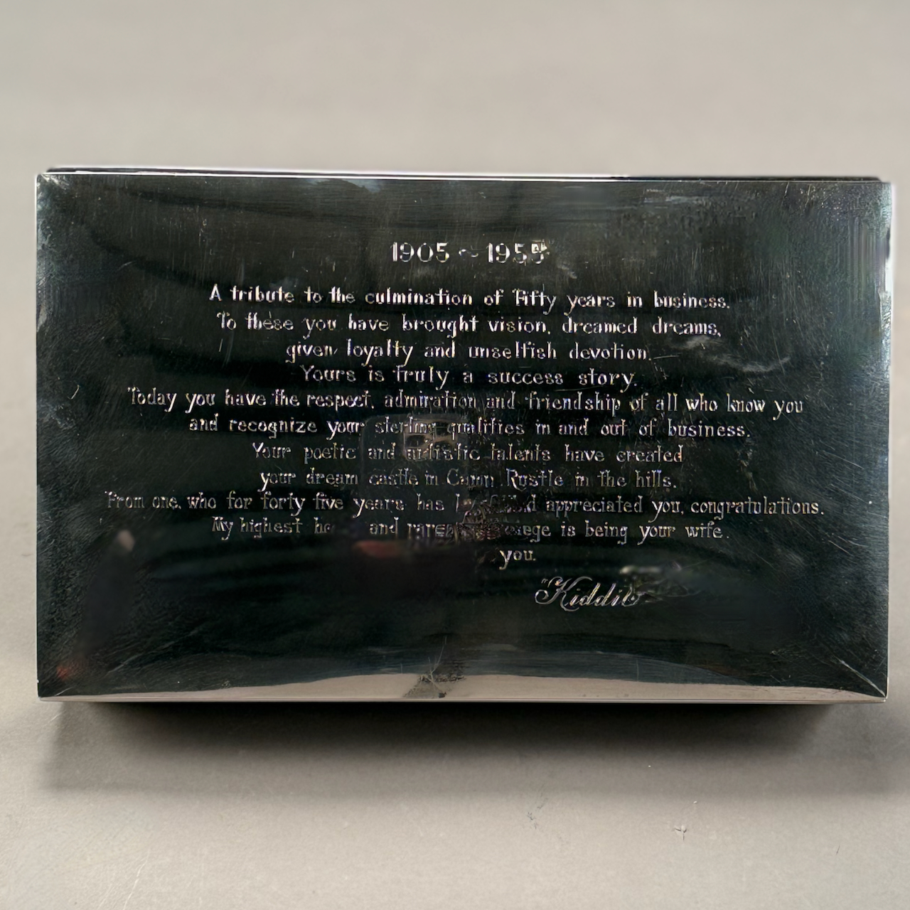 Home / ANTIQUE ESTATE AUCTION - FRI JANUARY 30 AT 6 PM / LOT 091 STERLING SILVER PRESENTATION BOX BY ANDREW A. TAYLOR, NEWARK, NJ 1930-1973, WEIGHT WITHOUT WOOD LINER 23.7 OZT. 9-1/2″(W), 5-3/4″(D), 2″(H) LOT 091 STERLING SILVER PRESENTATION BOX BY ANDREW A. TAYLOR, NEWARK, NJ 1930-1973, WEIGHT WITHOUT WOOD LINER 23.7 OZT. 9-1/2″(W), 5-3/4″(D), 2″(H) Place a Bid Category: ANTIQUE ESTATE AUCTION - FRI JANUARY 30 AT 6 PM Tag: auction Related products LOT 011 4 PCS OF ENGLISH STERLING SILVER. (1) EXPANDING TOAST RACK, 1901-1902, LONDON, 3″(H). (2) 3″ TEA CADDY SPOON, 1796-7, LONDON. (3) 7″ RETICULATED 2 HANDLED DISH, 1906-7, BIRMINGHAM. (4) 2″(H) TANKARD SHAPED MUSTARD WITH COBALT LINER, 1902-3, BIRMINGHAM. 12.6 OZT (W/O LINER) LOT 022 STEPHEN G. MANIATTY, ‘BUCKET OF POSIES’, OIL ON CANVAS, SIGNED LOWER RIGHT, FRAMED. 38 X 36 LOT 004 133 PC STERLING SILVER FLATWARE SET IN THE “KING PATTERN. 190 OZT (EXCLUDING 12 KNIVES), MONOGRAMMED LOT 009 48 PC STERLING SILVER FLATWARE SET IN THE “KING GEORGE” PATTERN BY GORHAM, 57 OZT (WITHOUT 16 KNIVES) MONOGRAMMED