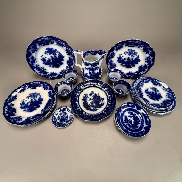 Home / OCTOBER 3 AT 6 PM / LOT 098 TWENTY-FIVE PCS OF FLOW BLUE STAFFORDSHIRE DINNERWARE INCLUDING 8-1/2″(H) “SCINDE” PITCHER, 4-1/4″(D) CUP PLATE, 5 (7-1/4″) PLATES, 4 (9-1/2″) PLATES, 2 (10-1/2″) PLATES AND MORE. LOT 098 TWENTY-FIVE PCS OF FLOW BLUE STAFFORDSHIRE DINNERWARE INCLUDING 8-1/2″(H) “SCINDE” PITCHER, 4-1/4″(D) CUP PLATE, 5 (7-1/4″) PLATES, 4 (9-1/2″) PLATES, 2 (10-1/2″) PLATES AND MORE. Place a Bid Categories: ANTIQUE AUCTION - FRI OCTOBER 3 AT 6 PM, OCTOBER 3 AT 6 PM Tag: auction Related products LOT 023 STEPHEN G. MANIATTY, ‘SAWMILL’, OIL ON CANVAS, SIGNED LOWER RIGHT, FRAMED WITH AN AWARD PLAQUE “GRUMBACHER ARTISTS MATERIAL AWARD/GRAND NATIONAL EXHIBITION/NEW YORK CITY – 1965”. 20 X 30 LOT 019 COIN SILVER MUG BY C. BARD & SON, PHILADELPHIA, PA, CIRCA 1850 INSCRIBED ‘ANNA CRAIG FULTON’, THE BODY HAVING REPOUSSE FLOWERS. 3-1/2″(H), 3.3 OZT LOT 009 48 PC STERLING SILVER FLATWARE SET IN THE “KING GEORGE” PATTERN BY GORHAM, 57 OZT (WITHOUT 16 KNIVES) MONOGRAMMED LOT 010 2 STERLING SILVER SHAKERS, ONE 6″(H) WITH BLURRED ENGLISH HALLMARKS, THE OTHER 6-1/2″(H) MARKED STERLING. 9 OZT