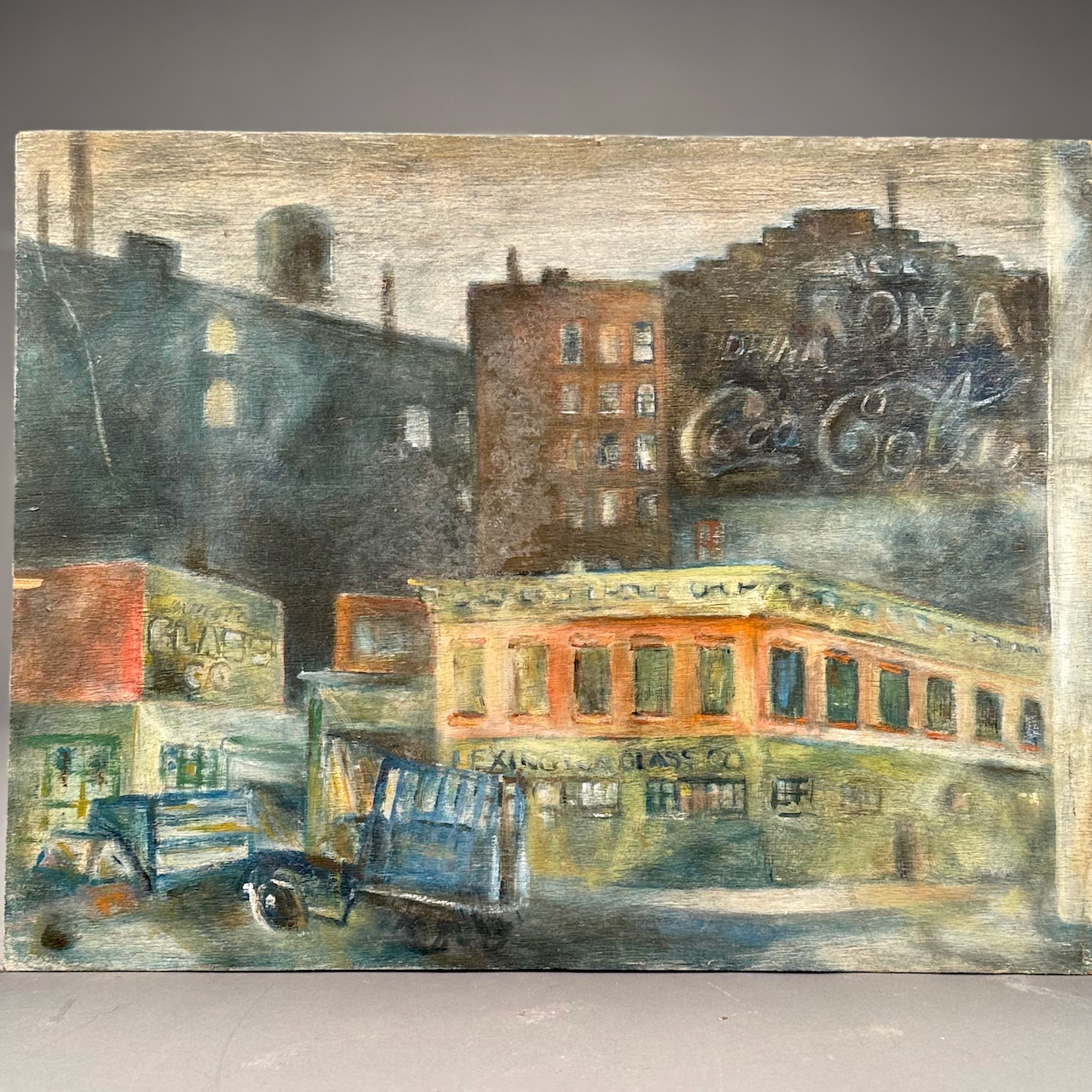 Home / ESTATE COLLECTION OF AMERICAN ARTIST JACK PAUL MAROON DECEMBER 19 AT 6PM / LOT 099E “COCA COLA”, OIL ON WOOD PANEL, UNSIGNED, UNFRAMED. 17 X 22 LOT 099E “COCA COLA”, OIL ON WOOD PANEL, UNSIGNED, UNFRAMED. 17 X 22 Category: ESTATE COLLECTION OF AMERICAN ARTIST JACK PAUL MAROON DECEMBER 19 AT 6PM Related products LOT 007 CHEVRON STATION NYC, WATERCOLOR, SIGNED. 11-1/4 X 15 SIGHT SIZE, IN MAT LOT 001 “JACK PAUL MAROON – MANHATTAN CORNER”, WATERCOLOR, UNSIGNED. 21 X 13-3/4 SIGHT SIZE, IN MAT AND ALBUM OF INVENTORY. LOT 010 BUSY STREET, NYC, WATERCOLOR, SIGNED. 11-1/2 X 15-1/2 SIGHT SIZE, IN MAT LOT 005 FRUIT SELLER, NYC, WATERCOLOR, SIGNED. 14-1/4 X 10-1/2 SIGHT SIZE, IN MAT
