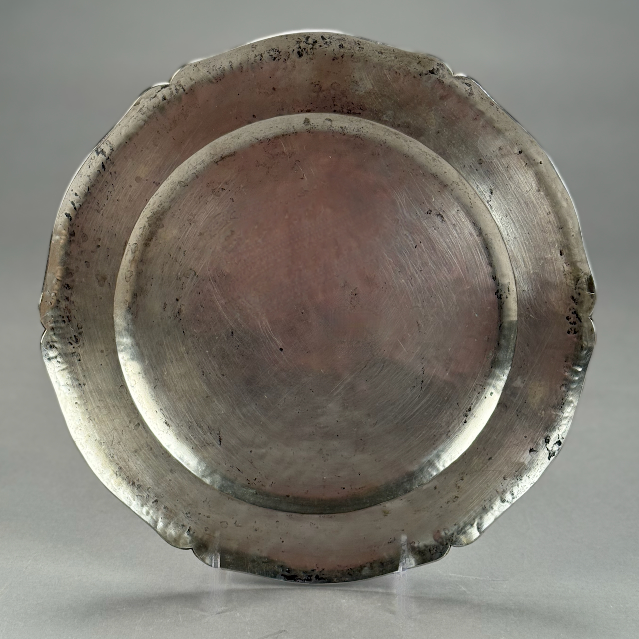 Home / ANTIQUE ESTATE AUCTION - FRI JANUARY 30 AT 6 PM / LOT 101 SOLID SILVER HAND HAMMERED PLATE MARKED “WELSCH PLATA 900”. 10-3/4″(D), 21 OZT LOT 101 SOLID SILVER HAND HAMMERED PLATE MARKED “WELSCH PLATA 900”. 10-3/4″(D), 21 OZT Place a Bid Category: ANTIQUE ESTATE AUCTION - FRI JANUARY 30 AT 6 PM Tag: auction Related products LOT 002 3 PC STERLING SILVER TEA SET BY GORHAM CONSISTING OF 10″ TEAPOT (2441), 6-1/2″ CREAMER (2444), 6″ COVERED SUGAR (2443), 45 OZT LOT 004 133 PC STERLING SILVER FLATWARE SET IN THE “KING PATTERN. 190 OZT (EXCLUDING 12 KNIVES), MONOGRAMMED LOT 021 OSCAR BERNINGHAUS, ‘THE ROAD TO TAOS’, OIL ON CANVAS, SIGNED LOWER RIGHT, GILT FRAME WITH ARTIST PLAQUE. ON REVERSE OF FRAME IS A PENNSYLVANIA ACADEMY OF THE FINE ART LABEL FOR THEIR 109TH ANNUAL ART EXHIBITION WITH TITLE AND ARTIST (1914). 24 X 36 LOT 019 COIN SILVER MUG BY C. BARD & SON, PHILADELPHIA, PA, CIRCA 1850 INSCRIBED ‘ANNA CRAIG FULTON’, THE BODY HAVING REPOUSSE FLOWERS. 3-1/2″(H), 3.3 OZT