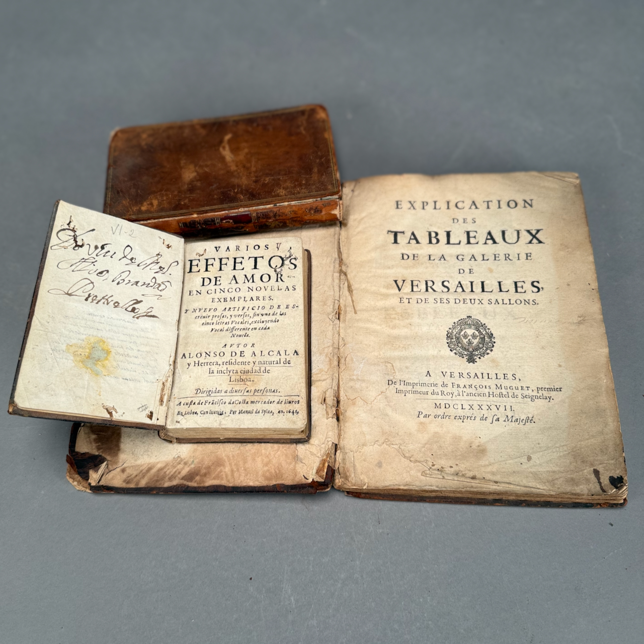 Home / ANTIQUE ESTATE AUCTION - FRI DECEMBER 12 AT 6 PM / LOT 101 THREE EARLY LEATHER BOUND BOOKS: (1) EXPLICATIONS DES TABLEAUX DE LA GALERIE DE VERSAILLES… 1688. (2) VARIOS EFFETOS DE AMOR…1641. (3) LETTRES PERSANES 1797 LOT 101 THREE EARLY LEATHER BOUND BOOKS: (1) EXPLICATIONS DES TABLEAUX DE LA GALERIE DE VERSAILLES… 1688. (2) VARIOS EFFETOS DE AMOR…1641. (3) LETTRES PERSANES 1797 Place a Bid Category: ANTIQUE ESTATE AUCTION - FRI DECEMBER 12 AT 6 PM Tag: auction Related products LOT 007 FIXED HANDLED STERLING SILVER LOW BASKET MARKED BIGELOW, KENNARD & CO. 5-1/2″(H), 10-1/2″(D), 9.8 OZT LOT 003 PAIR OF STERLING SILVER PORRINGERS BY GEBELEIN, BOSTON. 7″(L), 4-3/4 BOWL, 12 OZT LOT 019 COIN SILVER MUG BY C. BARD & SON, PHILADELPHIA, PA, CIRCA 1850 INSCRIBED ‘ANNA CRAIG FULTON’, THE BODY HAVING REPOUSSE FLOWERS. 3-1/2″(H), 3.3 OZT LOT 002 3 PC STERLING SILVER TEA SET BY GORHAM CONSISTING OF 10″ TEAPOT (2441), 6-1/2″ CREAMER (2444), 6″ COVERED SUGAR (2443), 45 OZT