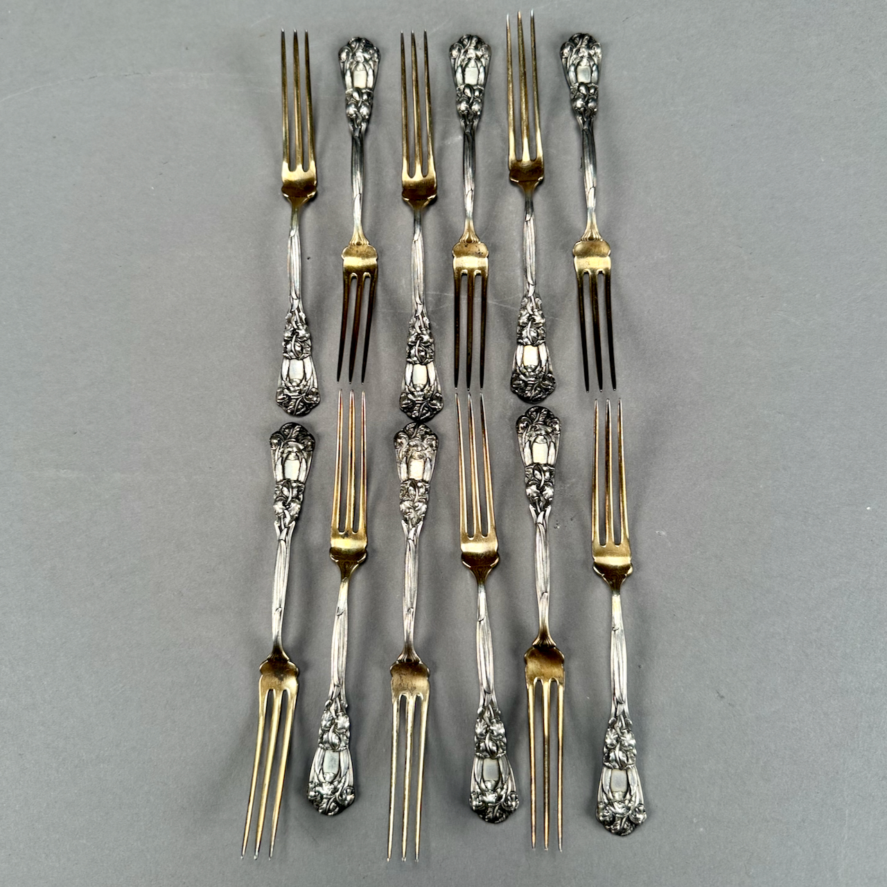 Home / ANTIQUE AUCTION - FRI NOVEMBER 7 AT 6 PM / LOT 101 TWELVE STERLING SILVER 5″ FORKS BY DURKIN IN THE “IRIS” PATTERN. 5 TR OZ. LOT 101 TWELVE STERLING SILVER 5″ FORKS BY DURKIN IN THE “IRIS” PATTERN. 5 TR OZ. Place a Bid Category: ANTIQUE AUCTION - FRI NOVEMBER 7 AT 6 PM Tag: auction Related products LOT 011 4 PCS OF ENGLISH STERLING SILVER. (1) EXPANDING TOAST RACK, 1901-1902, LONDON, 3″(H). (2) 3″ TEA CADDY SPOON, 1796-7, LONDON. (3) 7″ RETICULATED 2 HANDLED DISH, 1906-7, BIRMINGHAM. (4) 2″(H) TANKARD SHAPED MUSTARD WITH COBALT LINER, 1902-3, BIRMINGHAM. 12.6 OZT (W/O LINER) LOT 015 42 PC STERLING FLATWARE SET BY LUNT IN THE ‘WILLIAM & MARY’ PATTERN, NO MONOGRAM. 34.5 OZT (W/O 12 KNIVES) LOT 008 11 STERLING SILVER PLATES BY GORHAM. 6″(D), 27.8 OZT LOT 013 3 PCS OF STERLING SILVER: (1) OVAL DEEP SERVING DISH BY E. CALDWELL & CO, 10 X 6-1/2. (2) PORRINGER BY DOMINICK & HAFF, 7″. (3) PORRINGER BY RWM, 6″. 21.8 OZT