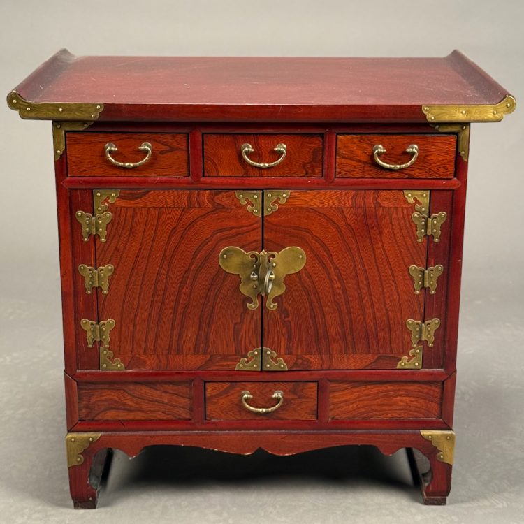 Home / ANTIQUE AUCTION - FRI OCTOBER 3 AT 6 PM / LOT 106 SMALL ORIENTAL CHEST WITH 6 SMALL DRAWERS (2 SECRET DRAWERS) AND 2 CUPBOARD DOORS. 24-1/2″(H), 26-1/2″(W) X 15-1/2″(D) LOT 106 SMALL ORIENTAL CHEST WITH 6 SMALL DRAWERS (2 SECRET DRAWERS) AND 2 CUPBOARD DOORS. 24-1/2″(H), 26-1/2″(W) X 15-1/2″(D) Place a Bid Categories: ANTIQUE AUCTION - FRI OCTOBER 3 AT 6 PM, OCTOBER 3 AT 6 PM Tag: auction Related products LOT 023 STEPHEN G. MANIATTY, ‘SAWMILL’, OIL ON CANVAS, SIGNED LOWER RIGHT, FRAMED WITH AN AWARD PLAQUE “GRUMBACHER ARTISTS MATERIAL AWARD/GRAND NATIONAL EXHIBITION/NEW YORK CITY – 1965”. 20 X 30 LOT 010 2 STERLING SILVER SHAKERS, ONE 6″(H) WITH BLURRED ENGLISH HALLMARKS, THE OTHER 6-1/2″(H) MARKED STERLING. 9 OZT LOT 003 PAIR OF STERLING SILVER PORRINGERS BY GEBELEIN, BOSTON. 7″(L), 4-3/4 BOWL, 12 OZT LOT 020 STERLING SILVER HINGED SQUARE BOX, LONDON, 1806, MAKERS MARK RH?, THE LID WITH A REPOUSSE SCENE OF 2 MEN PLAYING A BOARD GAME. 1-1/4″(H), 4″(W), 4″(D)