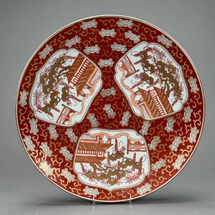 Home / ANTIQUE AUCTION - FRI OCTOBER 3 AT 6 PM / LOT 107 LARGE ORIENTAL PORCELAIN CHARGER MARKED “KASUGA IMARI WARE, JAPAN” 18-1/2″(D) LOT 107 LARGE ORIENTAL PORCELAIN CHARGER MARKED “KASUGA IMARI WARE, JAPAN” 18-1/2″(D) Place a Bid Categories: ANTIQUE AUCTION - FRI OCTOBER 3 AT 6 PM, OCTOBER 3 AT 6 PM Tag: auction Related products LOT 010 2 STERLING SILVER SHAKERS, ONE 6″(H) WITH BLURRED ENGLISH HALLMARKS, THE OTHER 6-1/2″(H) MARKED STERLING. 9 OZT LOT 011 4 PCS OF ENGLISH STERLING SILVER. (1) EXPANDING TOAST RACK, 1901-1902, LONDON, 3″(H). (2) 3″ TEA CADDY SPOON, 1796-7, LONDON. (3) 7″ RETICULATED 2 HANDLED DISH, 1906-7, BIRMINGHAM. (4) 2″(H) TANKARD SHAPED MUSTARD WITH COBALT LINER, 1902-3, BIRMINGHAM. 12.6 OZT (W/O LINER) LOT 012 2 SMALL STERLING SILVER TRAYS. (1) 6″ SQUARE BY DOMINICK & HAFF (2) 7-1/2 X 5-1/2 OVAL FOOTED TRAY BY J.E. CALDWELL & CO, BOTH MONOGRAMMED. 11.7 OZT LOT 003 PAIR OF STERLING SILVER PORRINGERS BY GEBELEIN, BOSTON. 7″(L), 4-3/4 BOWL, 12 OZT