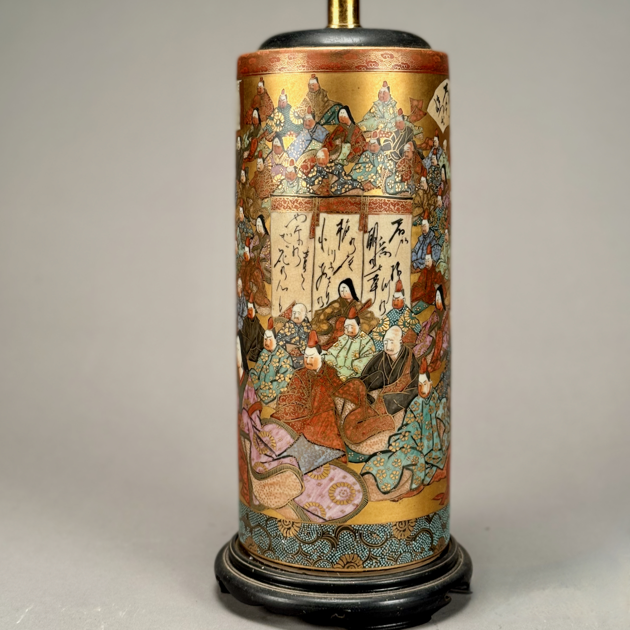 Home / ANTIQUE AUCTION - FRI OCTOBER 3 AT 6 PM / LOT 109 ANTIQUE ORIENTAL CYLINDER VASE LAMP HAVING MANY SEATED FIGURES AGAINST A GOLD BACKGROUND. 30″(H) (14-1/2″ VASE ONLY) LOT 109 ANTIQUE ORIENTAL CYLINDER VASE LAMP HAVING MANY SEATED FIGURES AGAINST A GOLD BACKGROUND. 30″(H) (14-1/2″ VASE ONLY) Place a Bid Categories: ANTIQUE AUCTION - FRI OCTOBER 3 AT 6 PM, OCTOBER 3 AT 6 PM Tag: auction Related products LOT 005 PAIR OF STERLING SILVER CANDELABRAS BY ARROWSMITH, WEIGHTED IN 2 PARTS. 14-1/2″(H) (1 REPAIRED) LOT 013 3 PCS OF STERLING SILVER: (1) OVAL DEEP SERVING DISH BY E. CALDWELL & CO, 10 X 6-1/2. (2) PORRINGER BY DOMINICK & HAFF, 7″. (3) PORRINGER BY RWM, 6″. 21.8 OZT LOT 014 PAIR OF STERLING SILVER 2 HANDLED PLATES BY WEBSTER MARKED ‘6613’, NO MONOGRAM, 10-1/2 AT WIDEST, 21.3 OZT LOT 001 PAIR OF STERLING SILVER COLUMN CANDLESTICKS BY GORHAM MARKED A3207 EACH HAVING REMOVABLE BOBECHES. 10-1/4″(H)