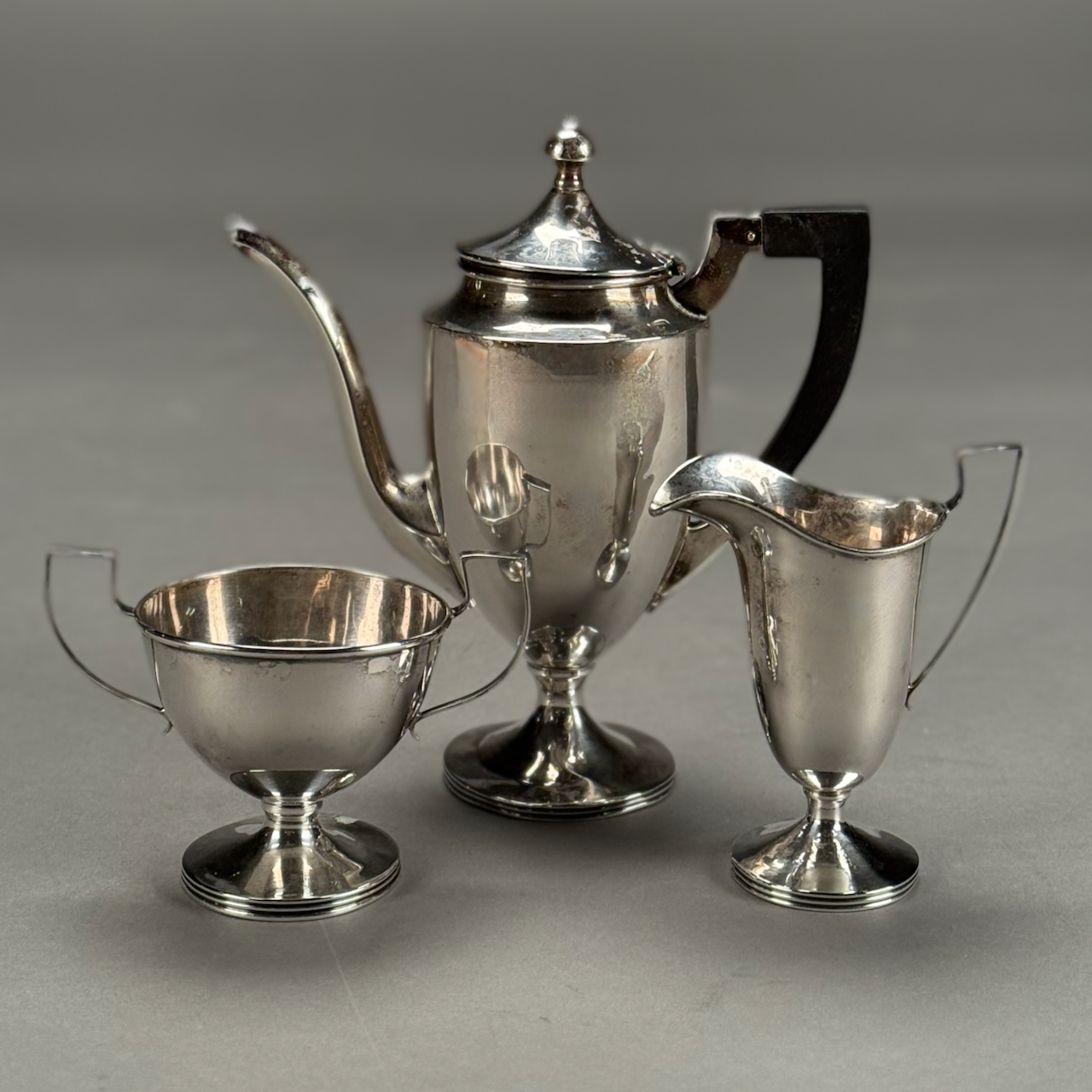 Home / ANTIQUE ESTATE AUCTION - FRI FEBRUARY 20 AT 6 PM / LOT 110 THREE PC STERLING SILVER TEA SET BY WEBSTER COMPANY, TEAPOT 8″(H), 10 OZT LOT 110 THREE PC STERLING SILVER TEA SET BY WEBSTER COMPANY, TEAPOT 8″(H), 10 OZT Place a Bid Category: ANTIQUE ESTATE AUCTION - FRI FEBRUARY 20 AT 6 PM Tag: auction Related products LOT 001 PAIR OF STERLING SILVER COLUMN CANDLESTICKS BY GORHAM MARKED A3207 EACH HAVING REMOVABLE BOBECHES. 10-1/4″(H) LOT 006 FINE PAIR OF FANCY STERLING SILVER CANDLESTICKS, SHEFFIELD, 1903-4 WITH MAKER’S MARK ‘HE LD’, 12″(H) LOT 015 42 PC STERLING FLATWARE SET BY LUNT IN THE ‘WILLIAM & MARY’ PATTERN, NO MONOGRAM. 34.5 OZT (W/O 12 KNIVES) LOT 002 3 PC STERLING SILVER TEA SET BY GORHAM CONSISTING OF 10″ TEAPOT (2441), 6-1/2″ CREAMER (2444), 6″ COVERED SUGAR (2443), 45 OZT