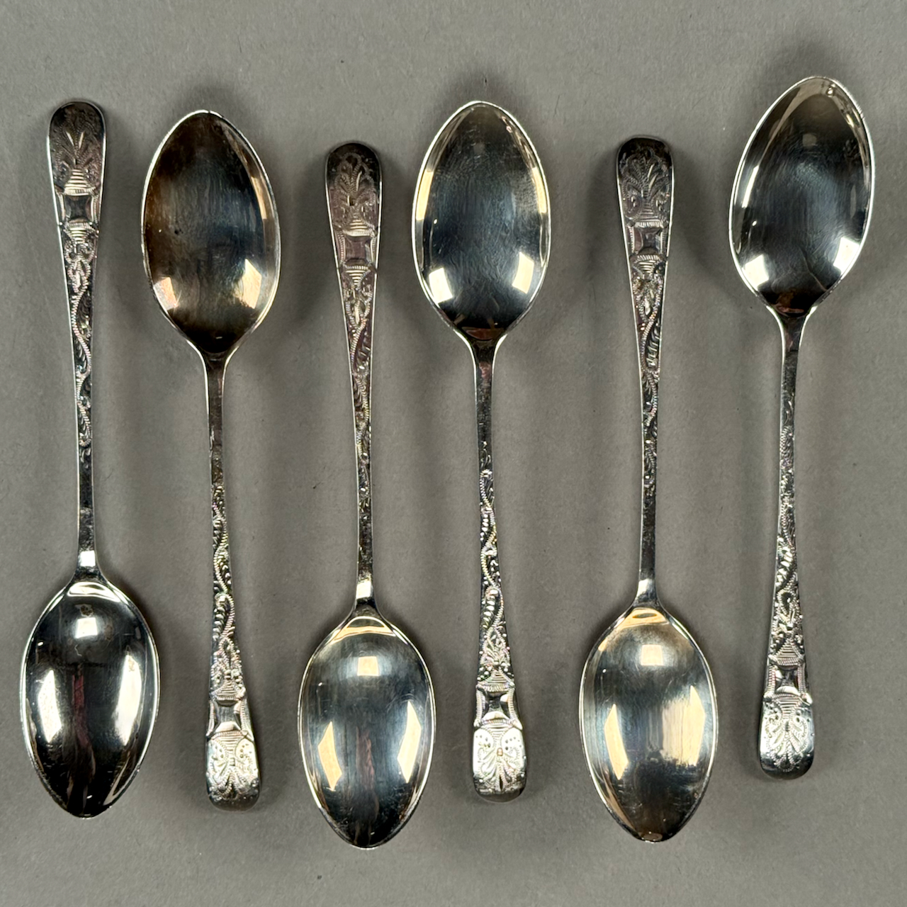 Home / ANTIQUE ESTATE AUCTION - FRI FEBRUARY 20 AT 6 PM / LOT 113 SIX STERLING SILVER SPOONS, SHEFFIELD, 1908/09, MAKER “JB” ENGRAVED. 4-1/2″(L), 1.5 OZT LOT 113 SIX STERLING SILVER SPOONS, SHEFFIELD, 1908/09, MAKER “JB” ENGRAVED. 4-1/2″(L), 1.5 OZT Place a Bid Category: ANTIQUE ESTATE AUCTION - FRI FEBRUARY 20 AT 6 PM Tag: auction Related products LOT 013 3 PCS OF STERLING SILVER: (1) OVAL DEEP SERVING DISH BY E. CALDWELL & CO, 10 X 6-1/2. (2) PORRINGER BY DOMINICK & HAFF, 7″. (3) PORRINGER BY RWM, 6″. 21.8 OZT LOT 023 STEPHEN G. MANIATTY, ‘SAWMILL’, OIL ON CANVAS, SIGNED LOWER RIGHT, FRAMED WITH AN AWARD PLAQUE “GRUMBACHER ARTISTS MATERIAL AWARD/GRAND NATIONAL EXHIBITION/NEW YORK CITY – 1965”. 20 X 30 LOT 007 FIXED HANDLED STERLING SILVER LOW BASKET MARKED BIGELOW, KENNARD & CO. 5-1/2″(H), 10-1/2″(D), 9.8 OZT LOT 017 CONTINENTAL SILVER (.800) DRESSER BOX MARKED ON BASE ‘BEUTHNER’. 3-1/4″(H), 5-1/2″(W) X 4″(D), 8 OZT