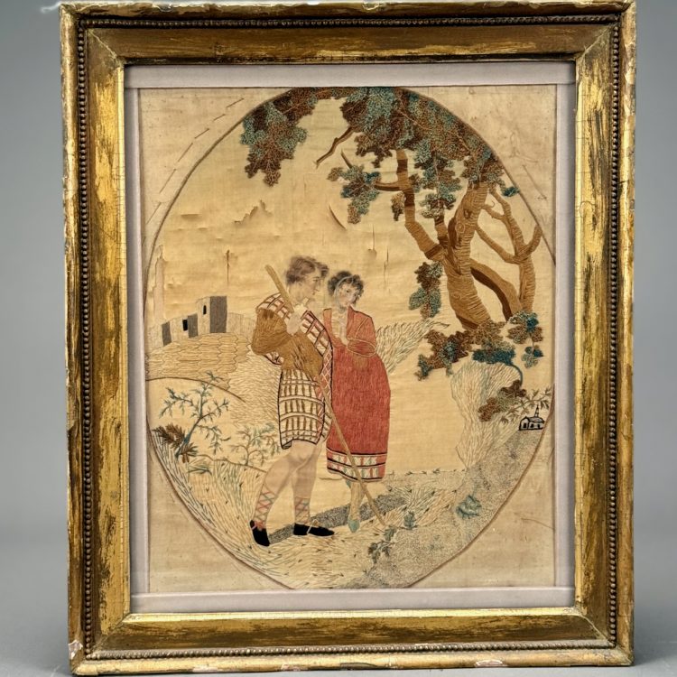 Home / ANTIQUE AUCTION - FRI OCTOBER 3 AT 6 PM / LOT 116 FRAMED ANTIQUE NEEDLEWORK PICTURE OF A MAN AND WOMAN IN LANDSCAPE WITH BUILDING AND CHURCH. 15-1/2 X 12-1/2 OVAL IMAGE LOT 116 FRAMED ANTIQUE NEEDLEWORK PICTURE OF A MAN AND WOMAN IN LANDSCAPE WITH BUILDING AND CHURCH. 15-1/2 X 12-1/2 OVAL IMAGE Place a Bid Categories: ANTIQUE AUCTION - FRI OCTOBER 3 AT 6 PM, OCTOBER 3 AT 6 PM Tag: auction Related products LOT 014 PAIR OF STERLING SILVER 2 HANDLED PLATES BY WEBSTER MARKED ‘6613’, NO MONOGRAM, 10-1/2 AT WIDEST, 21.3 OZT LOT 005 PAIR OF STERLING SILVER CANDELABRAS BY ARROWSMITH, WEIGHTED IN 2 PARTS. 14-1/2″(H) (1 REPAIRED) LOT 007 FIXED HANDLED STERLING SILVER LOW BASKET MARKED BIGELOW, KENNARD & CO. 5-1/2″(H), 10-1/2″(D), 9.8 OZT LOT 006 FINE PAIR OF FANCY STERLING SILVER CANDLESTICKS, SHEFFIELD, 1903-4 WITH MAKER’S MARK ‘HE LD’, 12″(H)