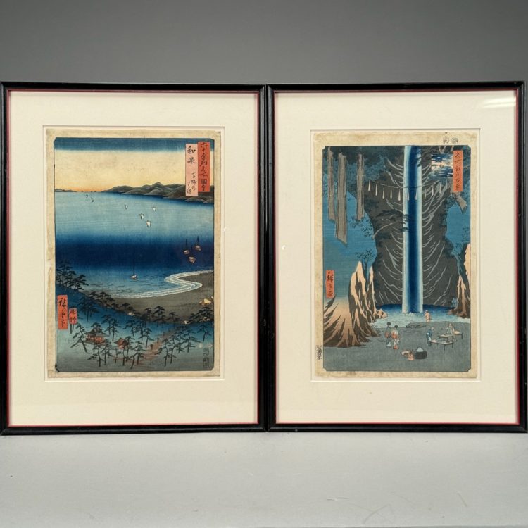 Home / ANTIQUE AUCTION - FRI OCTOBER 3 AT 6 PM / LOT 118 HIROSHIGE, 2 WORKS: THE BEACH AT TAKASHI IN IZUMI PROVINCE AND FUDO FALLS, OJI, WOODBLOCK PRINTS, SIGNED UPPER RIGHT, FRAMED. 14 X 9-1/4 LOT 118 HIROSHIGE, 2 WORKS: THE BEACH AT TAKASHI IN IZUMI PROVINCE AND FUDO FALLS, OJI, WOODBLOCK PRINTS, SIGNED UPPER RIGHT, FRAMED. 14 X 9-1/4 Place a Bid Categories: ANTIQUE AUCTION - FRI OCTOBER 3 AT 6 PM, OCTOBER 3 AT 6 PM Tag: auction Related products LOT 018 COIN SILVER HANDLED CUP, PROBABLY FREEMAN & WALLIN, PHILADELPHIA, CIRCA 1850. 4″(H), 3.6 OZT. LOT 012 2 SMALL STERLING SILVER TRAYS. (1) 6″ SQUARE BY DOMINICK & HAFF (2) 7-1/2 X 5-1/2 OVAL FOOTED TRAY BY J.E. CALDWELL & CO, BOTH MONOGRAMMED. 11.7 OZT LOT 009 48 PC STERLING SILVER FLATWARE SET IN THE “KING GEORGE” PATTERN BY GORHAM, 57 OZT (WITHOUT 16 KNIVES) MONOGRAMMED LOT 011 4 PCS OF ENGLISH STERLING SILVER. (1) EXPANDING TOAST RACK, 1901-1902, LONDON, 3″(H). (2) 3″ TEA CADDY SPOON, 1796-7, LONDON. (3) 7″ RETICULATED 2 HANDLED DISH, 1906-7, BIRMINGHAM. (4) 2″(H) TANKARD SHAPED MUSTARD WITH COBALT LINER, 1902-3, BIRMINGHAM. 12.6 OZT (W/O LINER)