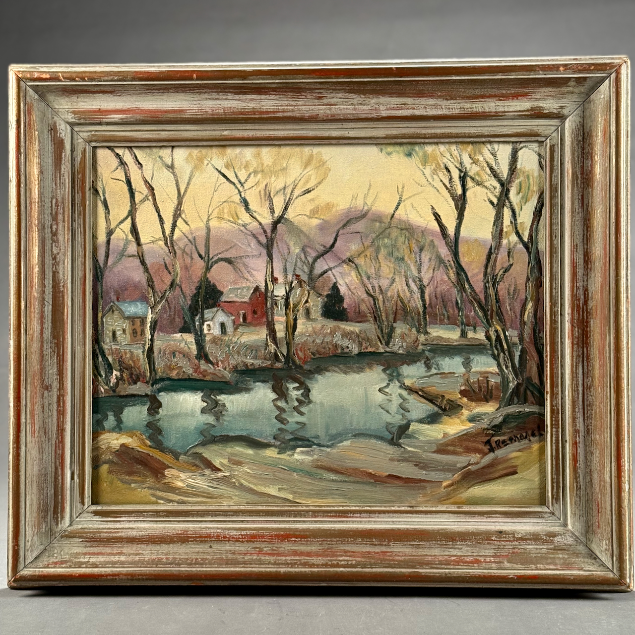 Home / ANTIQUE ESTATE AUCTION - FRI JANUARY 30 AT 6 PM / LOT 120 SIGNED, FARM HOUSE ACROSS THE RIVER, OIL ON CANVAS, SIGNED ILLEGIBLY BOTTOM RIGHT J. REMMEL?, FRAMED. 16 X 20 LOT 120 SIGNED, FARM HOUSE ACROSS THE RIVER, OIL ON CANVAS, SIGNED ILLEGIBLY BOTTOM RIGHT J. REMMEL?, FRAMED. 16 X 20 Place a Bid Category: ANTIQUE ESTATE AUCTION - FRI JANUARY 30 AT 6 PM Tag: auction Related products LOT 003 PAIR OF STERLING SILVER PORRINGERS BY GEBELEIN, BOSTON. 7″(L), 4-3/4 BOWL, 12 OZT LOT 013 3 PCS OF STERLING SILVER: (1) OVAL DEEP SERVING DISH BY E. CALDWELL & CO, 10 X 6-1/2. (2) PORRINGER BY DOMINICK & HAFF, 7″. (3) PORRINGER BY RWM, 6″. 21.8 OZT LOT 020 STERLING SILVER HINGED SQUARE BOX, LONDON, 1806, MAKERS MARK RH?, THE LID WITH A REPOUSSE SCENE OF 2 MEN PLAYING A BOARD GAME. 1-1/4″(H), 4″(W), 4″(D) LOT 002 3 PC STERLING SILVER TEA SET BY GORHAM CONSISTING OF 10″ TEAPOT (2441), 6-1/2″ CREAMER (2444), 6″ COVERED SUGAR (2443), 45 OZT