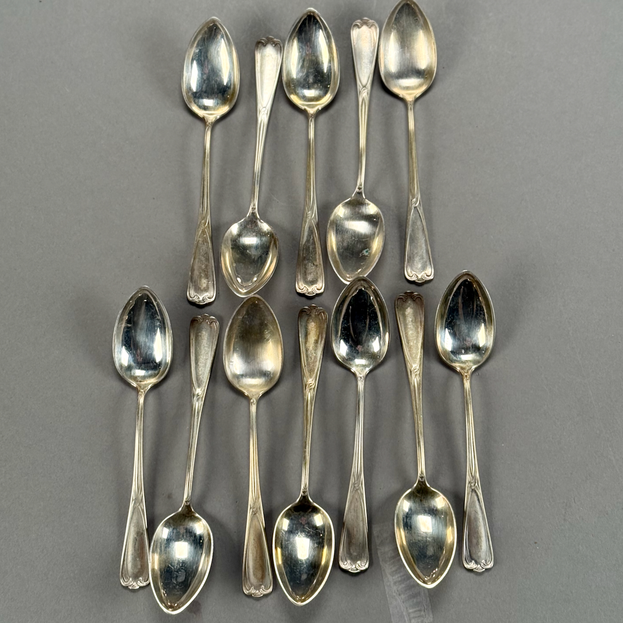Home / ANTIQUE ESTATE AUCTION - FRI FEBRUARY 20 AT 6 PM / LOT 121 TWELVE .800 SILVER SPOONS. 5-1/2″(L), 6 OZT LOT 121 TWELVE .800 SILVER SPOONS. 5-1/2″(L), 6 OZT Place a Bid Category: ANTIQUE ESTATE AUCTION - FRI FEBRUARY 20 AT 6 PM Tag: auction Related products LOT 013 3 PCS OF STERLING SILVER: (1) OVAL DEEP SERVING DISH BY E. CALDWELL & CO, 10 X 6-1/2. (2) PORRINGER BY DOMINICK & HAFF, 7″. (3) PORRINGER BY RWM, 6″. 21.8 OZT LOT 017 CONTINENTAL SILVER (.800) DRESSER BOX MARKED ON BASE ‘BEUTHNER’. 3-1/4″(H), 5-1/2″(W) X 4″(D), 8 OZT LOT 022 STEPHEN G. MANIATTY, ‘BUCKET OF POSIES’, OIL ON CANVAS, SIGNED LOWER RIGHT, FRAMED. 38 X 36 LOT 016 6 PCS OF STERLING SILVER: (1) 6″(D) PLATE BY TOWLE. (2) 3-1/2 FOOTED CREAMER BY POOLE. (3) 4″(D) FOOTED BOWL BY SHREVE, CRUMP & LOW CO (4) 7″(L) FOOTED GRAVY BY J.E. CALDWELL & CO (5) 4″ CREAMER BY DOMINICK & HAFF (6) 6-3/4″(W) DISH BY TOWLE. 25.2 OZT