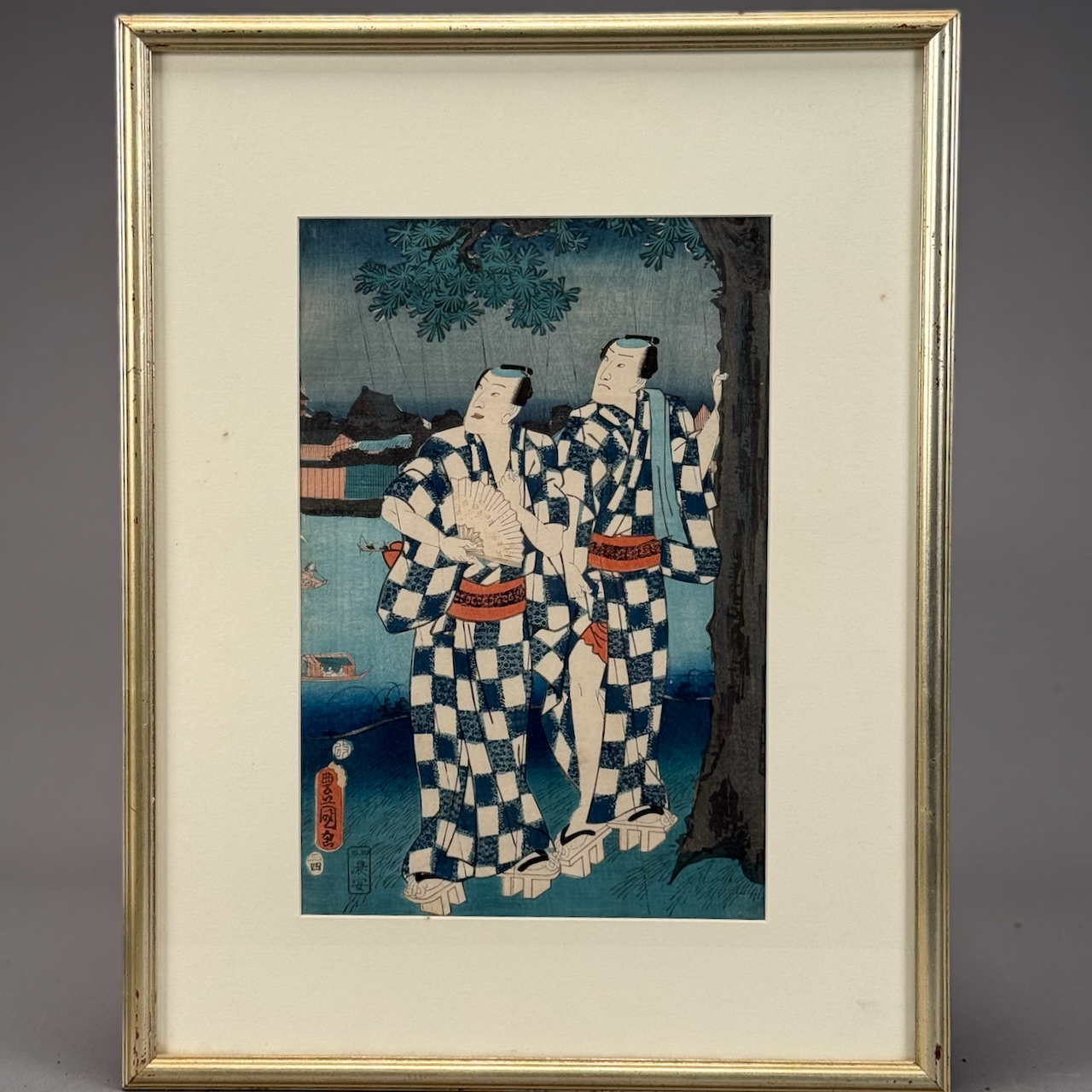 Home / ANTIQUE AUCTION - FRI OCTOBER 3 AT 6 PM / LOT 121 UTAGAWA KUNISADA, 2 FIGURES BESIDE TREE, SIGNED IN PRINT BOTTOM LEFT, WOODBLOCK PRINT, FRAMED. 1-1/4 X 8-3/4 SIGHT SIZE LOT 121 UTAGAWA KUNISADA, 2 FIGURES BESIDE TREE, SIGNED IN PRINT BOTTOM LEFT, WOODBLOCK PRINT, FRAMED. 1-1/4 X 8-3/4 SIGHT SIZE Place a Bid Categories: ANTIQUE AUCTION - FRI OCTOBER 3 AT 6 PM, OCTOBER 3 AT 6 PM Tag: auction Related products LOT 003 PAIR OF STERLING SILVER PORRINGERS BY GEBELEIN, BOSTON. 7″(L), 4-3/4 BOWL, 12 OZT LOT 021 OSCAR BERNINGHAUS, ‘THE ROAD TO TAOS’, OIL ON CANVAS, SIGNED LOWER RIGHT, GILT FRAME WITH ARTIST PLAQUE. ON REVERSE OF FRAME IS A PENNSYLVANIA ACADEMY OF THE FINE ART LABEL FOR THEIR 109TH ANNUAL ART EXHIBITION WITH TITLE AND ARTIST (1914). 24 X 36 LOT 001 PAIR OF STERLING SILVER COLUMN CANDLESTICKS BY GORHAM MARKED A3207 EACH HAVING REMOVABLE BOBECHES. 10-1/4″(H) LOT 023 STEPHEN G. MANIATTY, ‘SAWMILL’, OIL ON CANVAS, SIGNED LOWER RIGHT, FRAMED WITH AN AWARD PLAQUE “GRUMBACHER ARTISTS MATERIAL AWARD/GRAND NATIONAL EXHIBITION/NEW YORK CITY – 1965”. 20 X 30