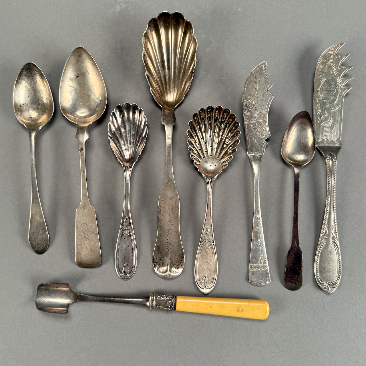 Home / ANTIQUE ESTATE AUCTION - FRI FEBRUARY 20 AT 6 PM / LOT 123 NINE FLATWARE PCS, MOSTLY COIN SILVER INCLUDING 6-1/4″ TEASPOON BY THOMAS BYRNES AND ANOTHER BY JOEL SAYRE LOT 123 NINE FLATWARE PCS, MOSTLY COIN SILVER INCLUDING 6-1/4″ TEASPOON BY THOMAS BYRNES AND ANOTHER BY JOEL SAYRE Place a Bid Category: ANTIQUE ESTATE AUCTION - FRI FEBRUARY 20 AT 6 PM Tag: auction Related products LOT 011 4 PCS OF ENGLISH STERLING SILVER. (1) EXPANDING TOAST RACK, 1901-1902, LONDON, 3″(H). (2) 3″ TEA CADDY SPOON, 1796-7, LONDON. (3) 7″ RETICULATED 2 HANDLED DISH, 1906-7, BIRMINGHAM. (4) 2″(H) TANKARD SHAPED MUSTARD WITH COBALT LINER, 1902-3, BIRMINGHAM. 12.6 OZT (W/O LINER) LOT 005 PAIR OF STERLING SILVER CANDELABRAS BY ARROWSMITH, WEIGHTED IN 2 PARTS. 14-1/2″(H) (1 REPAIRED) LOT 014 PAIR OF STERLING SILVER 2 HANDLED PLATES BY WEBSTER MARKED ‘6613’, NO MONOGRAM, 10-1/2 AT WIDEST, 21.3 OZT LOT 015 42 PC STERLING FLATWARE SET BY LUNT IN THE ‘WILLIAM & MARY’ PATTERN, NO MONOGRAM. 34.5 OZT (W/O 12 KNIVES)