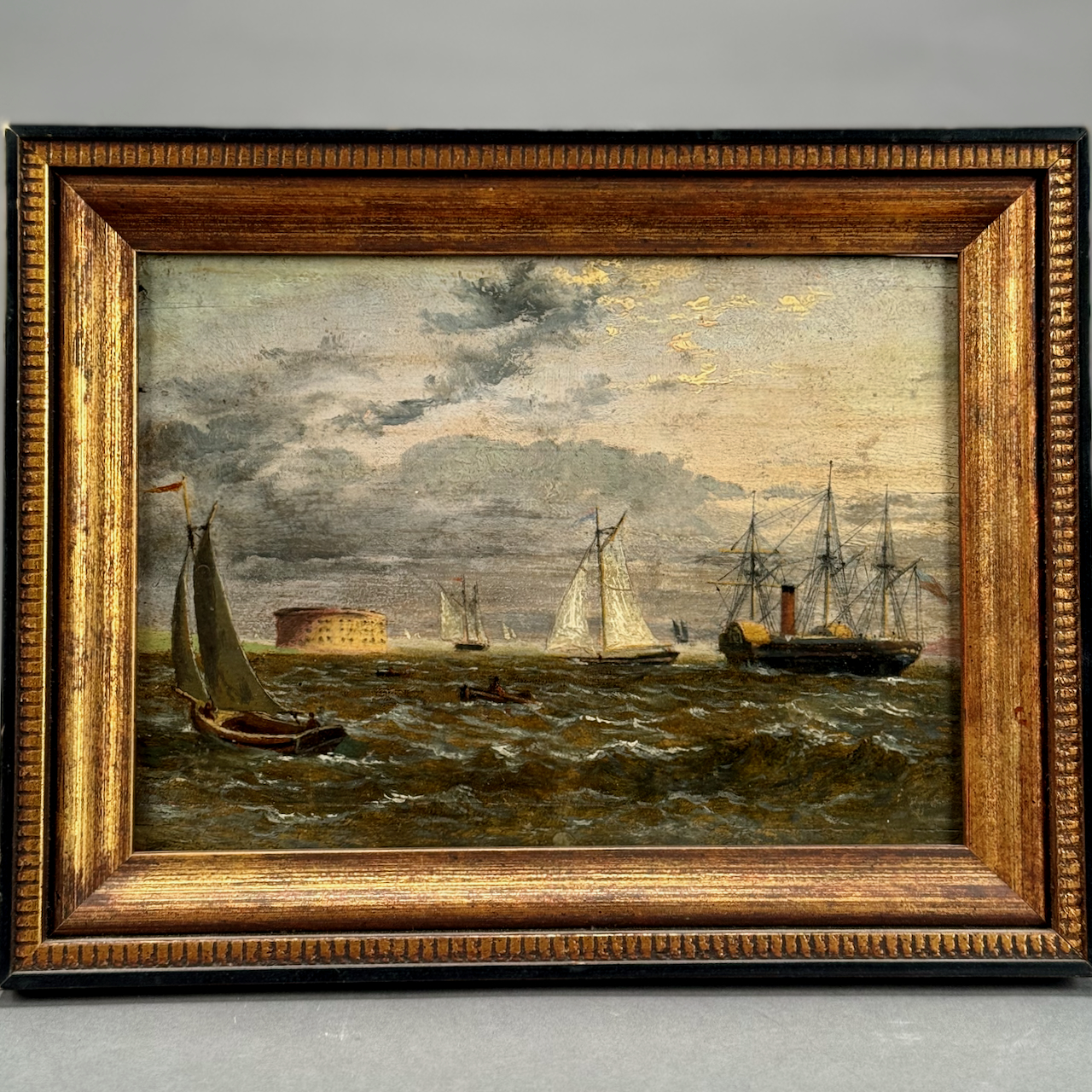 Home / ANTIQUE AUCTION - FRI NOVEMBER 7 AT 6 PM / LOT 124 UNSIGNED, STEAM SHIP PASSING CASTLE WILLIAM, NEW YORK HARBOR, OIL ON WOOD PANEL, FRAMED. 7-1/2 X 10-1/2 LOT 124 UNSIGNED, STEAM SHIP PASSING CASTLE WILLIAM, NEW YORK HARBOR, OIL ON WOOD PANEL, FRAMED. 7-1/2 X 10-1/2 Place a Bid Category: ANTIQUE AUCTION - FRI NOVEMBER 7 AT 6 PM Tag: auction Related products LOT 023 STEPHEN G. MANIATTY, ‘SAWMILL’, OIL ON CANVAS, SIGNED LOWER RIGHT, FRAMED WITH AN AWARD PLAQUE “GRUMBACHER ARTISTS MATERIAL AWARD/GRAND NATIONAL EXHIBITION/NEW YORK CITY – 1965”. 20 X 30 LOT 004 133 PC STERLING SILVER FLATWARE SET IN THE “KING PATTERN. 190 OZT (EXCLUDING 12 KNIVES), MONOGRAMMED LOT 005 PAIR OF STERLING SILVER CANDELABRAS BY ARROWSMITH, WEIGHTED IN 2 PARTS. 14-1/2″(H) (1 REPAIRED) LOT 009 48 PC STERLING SILVER FLATWARE SET IN THE “KING GEORGE” PATTERN BY GORHAM, 57 OZT (WITHOUT 16 KNIVES) MONOGRAMMED