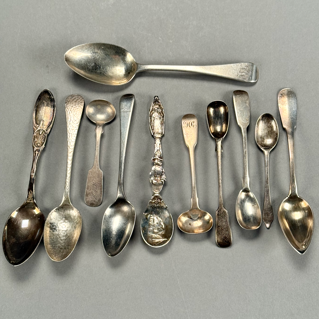 Home / ANTIQUE ESTATE AUCTION - FRI FEBRUARY 20 AT 6 PM / LOT 125 ELEVEN STERLING SILVER ENGLISH FLATWARE PCS, ASSORTED MAKERS AND DATES. 6.7 OZT LOT 125 ELEVEN STERLING SILVER ENGLISH FLATWARE PCS, ASSORTED MAKERS AND DATES. 6.7 OZT Place a Bid Category: ANTIQUE ESTATE AUCTION - FRI FEBRUARY 20 AT 6 PM Tag: auction Related products LOT 021 OSCAR BERNINGHAUS, ‘THE ROAD TO TAOS’, OIL ON CANVAS, SIGNED LOWER RIGHT, GILT FRAME WITH ARTIST PLAQUE. ON REVERSE OF FRAME IS A PENNSYLVANIA ACADEMY OF THE FINE ART LABEL FOR THEIR 109TH ANNUAL ART EXHIBITION WITH TITLE AND ARTIST (1914). 24 X 36 LOT 008 11 STERLING SILVER PLATES BY GORHAM. 6″(D), 27.8 OZT LOT 015 42 PC STERLING FLATWARE SET BY LUNT IN THE ‘WILLIAM & MARY’ PATTERN, NO MONOGRAM. 34.5 OZT (W/O 12 KNIVES) LOT 005 PAIR OF STERLING SILVER CANDELABRAS BY ARROWSMITH, WEIGHTED IN 2 PARTS. 14-1/2″(H) (1 REPAIRED)