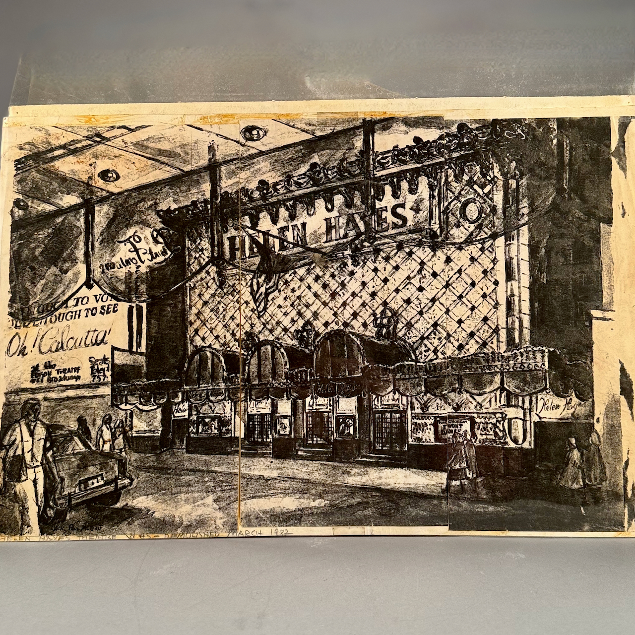 Home / ESTATE COLLECTION OF AMERICAN ARTIST JACK PAUL MAROON DECEMBER 19 AT 6PM / LOT 125 HELEN HAYES “THEATRE WAS DEMOLISHED MARCH 1982”, MARKER & WATERCOLOR IN 3 PIECES, SIGNED, UNFRAMED. 14-1/2 X 22 LOT 125 HELEN HAYES “THEATRE WAS DEMOLISHED MARCH 1982”, MARKER & WATERCOLOR IN 3 PIECES, SIGNED, UNFRAMED. 14-1/2 X 22 Place a Bid Category: ESTATE COLLECTION OF AMERICAN ARTIST JACK PAUL MAROON DECEMBER 19 AT 6PM Tag: auction Related products LOT 011 4 PCS OF ENGLISH STERLING SILVER. (1) EXPANDING TOAST RACK, 1901-1902, LONDON, 3″(H). (2) 3″ TEA CADDY SPOON, 1796-7, LONDON. (3) 7″ RETICULATED 2 HANDLED DISH, 1906-7, BIRMINGHAM. (4) 2″(H) TANKARD SHAPED MUSTARD WITH COBALT LINER, 1902-3, BIRMINGHAM. 12.6 OZT (W/O LINER) LOT 023 STEPHEN G. MANIATTY, ‘SAWMILL’, OIL ON CANVAS, SIGNED LOWER RIGHT, FRAMED WITH AN AWARD PLAQUE “GRUMBACHER ARTISTS MATERIAL AWARD/GRAND NATIONAL EXHIBITION/NEW YORK CITY – 1965”. 20 X 30 LOT 016 6 PCS OF STERLING SILVER: (1) 6″(D) PLATE BY TOWLE. (2) 3-1/2 FOOTED CREAMER BY POOLE. (3) 4″(D) FOOTED BOWL BY SHREVE, CRUMP & LOW CO (4) 7″(L) FOOTED GRAVY BY J.E. CALDWELL & CO (5) 4″ CREAMER BY DOMINICK & HAFF (6) 6-3/4″(W) DISH BY TOWLE. 25.2 OZT LOT 009 48 PC STERLING SILVER FLATWARE SET IN THE “KING GEORGE” PATTERN BY GORHAM, 57 OZT (WITHOUT 16 KNIVES) MONOGRAMMED