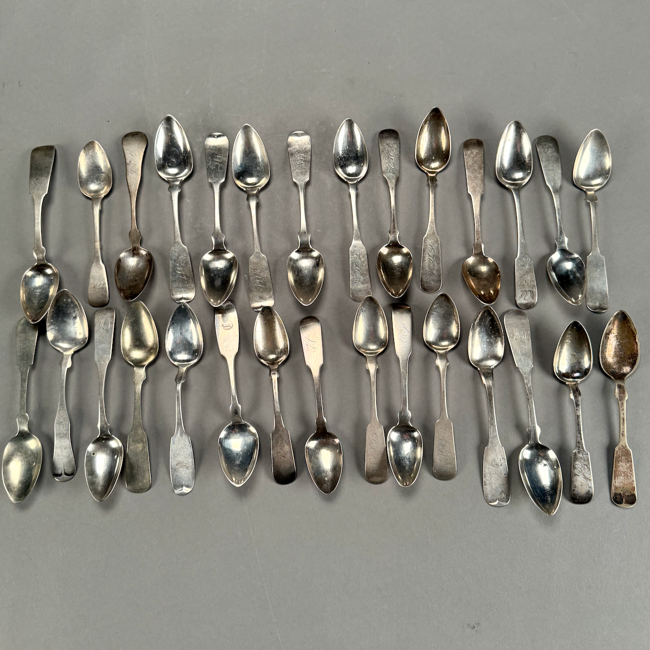Home / ANTIQUE ESTATE AUCTION - FRI FEBRUARY 20 AT 6 PM / LOT 126 TWENTY-NINE COIN SILVER SPOONS BY VARIOUS MAKERS. 15 OZT LOT 126 TWENTY-NINE COIN SILVER SPOONS BY VARIOUS MAKERS. 15 OZT Place a Bid Category: ANTIQUE ESTATE AUCTION - FRI FEBRUARY 20 AT 6 PM Tag: auction Related products LOT 013 3 PCS OF STERLING SILVER: (1) OVAL DEEP SERVING DISH BY E. CALDWELL & CO, 10 X 6-1/2. (2) PORRINGER BY DOMINICK & HAFF, 7″. (3) PORRINGER BY RWM, 6″. 21.8 OZT LOT 012 2 SMALL STERLING SILVER TRAYS. (1) 6″ SQUARE BY DOMINICK & HAFF (2) 7-1/2 X 5-1/2 OVAL FOOTED TRAY BY J.E. CALDWELL & CO, BOTH MONOGRAMMED. 11.7 OZT LOT 015 42 PC STERLING FLATWARE SET BY LUNT IN THE ‘WILLIAM & MARY’ PATTERN, NO MONOGRAM. 34.5 OZT (W/O 12 KNIVES) LOT 008 11 STERLING SILVER PLATES BY GORHAM. 6″(D), 27.8 OZT