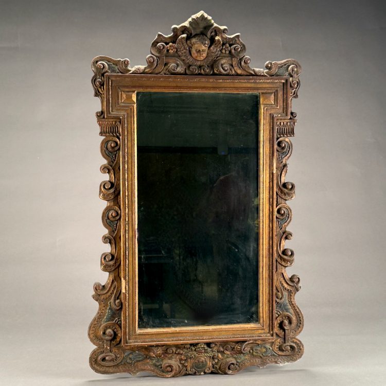 Home / ANTIQUE AUCTION - FRI OCTOBER 3 AT 6 PM / LOT 127 FANCY GILT & PAINTED WALL MIRROR WITH CUPID HEAD CREST. 38″(H), 24″(W) LOT 127 FANCY GILT & PAINTED WALL MIRROR WITH CUPID HEAD CREST. 38″(H), 24″(W) Place a Bid Categories: ANTIQUE AUCTION - FRI OCTOBER 3 AT 6 PM, OCTOBER 3 AT 6 PM Tag: auction Related products LOT 006 FINE PAIR OF FANCY STERLING SILVER CANDLESTICKS, SHEFFIELD, 1903-4 WITH MAKER’S MARK ‘HE LD’, 12″(H) LOT 009 48 PC STERLING SILVER FLATWARE SET IN THE “KING GEORGE” PATTERN BY GORHAM, 57 OZT (WITHOUT 16 KNIVES) MONOGRAMMED LOT 012 2 SMALL STERLING SILVER TRAYS. (1) 6″ SQUARE BY DOMINICK & HAFF (2) 7-1/2 X 5-1/2 OVAL FOOTED TRAY BY J.E. CALDWELL & CO, BOTH MONOGRAMMED. 11.7 OZT LOT 018 COIN SILVER HANDLED CUP, PROBABLY FREEMAN & WALLIN, PHILADELPHIA, CIRCA 1850. 4″(H), 3.6 OZT.