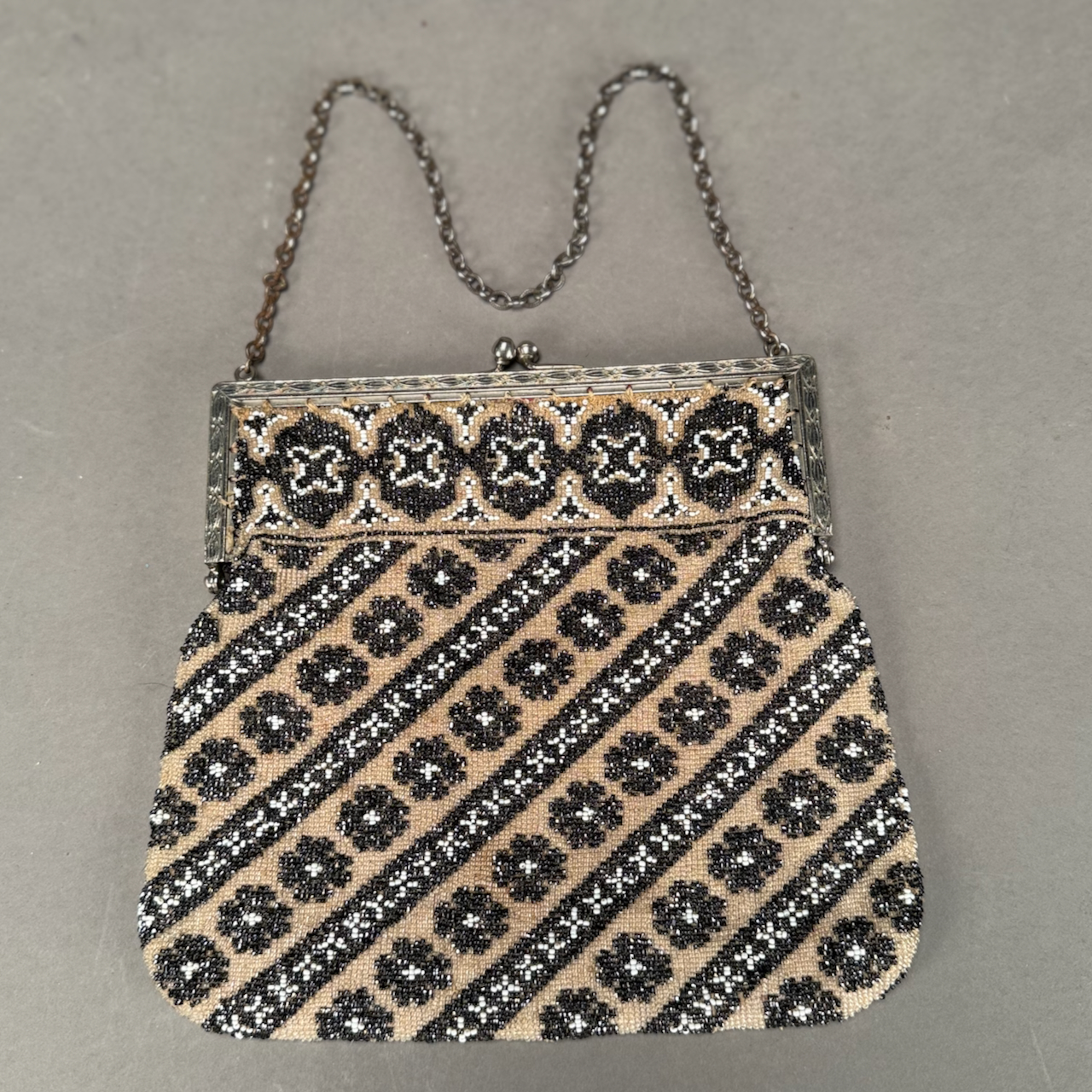 Home / ANTIQUE ESTATE AUCTION - FRI DECEMBER 12 AT 6 PM / LOT 131 FINE BEADED PURSE IN BLACK, WHITE AND TAN BEADS, METAL FRAME. 7” X 7-1/2” LOT 131 FINE BEADED PURSE IN BLACK, WHITE AND TAN BEADS, METAL FRAME. 7” X 7-1/2” Place a Bid Category: ANTIQUE ESTATE AUCTION - FRI DECEMBER 12 AT 6 PM Tag: auction Related products LOT 023 STEPHEN G. MANIATTY, ‘SAWMILL’, OIL ON CANVAS, SIGNED LOWER RIGHT, FRAMED WITH AN AWARD PLAQUE “GRUMBACHER ARTISTS MATERIAL AWARD/GRAND NATIONAL EXHIBITION/NEW YORK CITY – 1965”. 20 X 30 LOT 021 OSCAR BERNINGHAUS, ‘THE ROAD TO TAOS’, OIL ON CANVAS, SIGNED LOWER RIGHT, GILT FRAME WITH ARTIST PLAQUE. ON REVERSE OF FRAME IS A PENNSYLVANIA ACADEMY OF THE FINE ART LABEL FOR THEIR 109TH ANNUAL ART EXHIBITION WITH TITLE AND ARTIST (1914). 24 X 36 LOT 013 3 PCS OF STERLING SILVER: (1) OVAL DEEP SERVING DISH BY E. CALDWELL & CO, 10 X 6-1/2. (2) PORRINGER BY DOMINICK & HAFF, 7″. (3) PORRINGER BY RWM, 6″. 21.8 OZT LOT 019 COIN SILVER MUG BY C. BARD & SON, PHILADELPHIA, PA, CIRCA 1850 INSCRIBED ‘ANNA CRAIG FULTON’, THE BODY HAVING REPOUSSE FLOWERS. 3-1/2″(H), 3.3 OZT