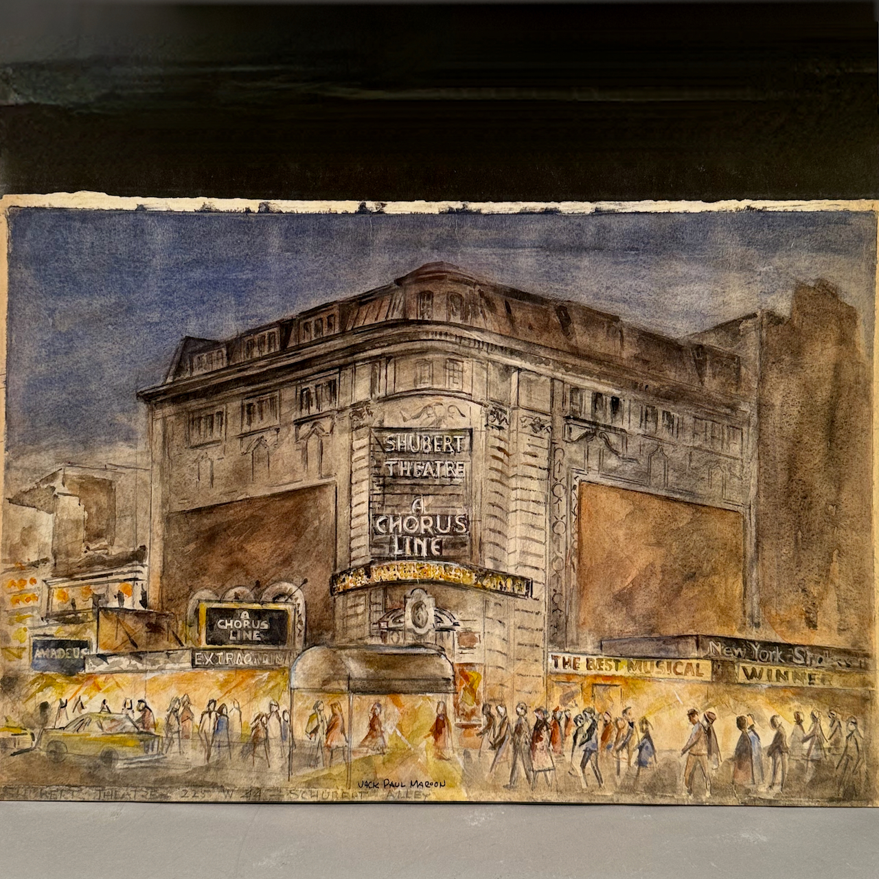 Home / ESTATE COLLECTION OF AMERICAN ARTIST JACK PAUL MAROON DECEMBER 19 AT 6PM / LOT 133 “SHUBERT THEATRE 225 W 44 – SHUBERT ALLEY”, WATERCOLOR, SIGNED, UNFRAMED. 15 X 22 LOT 133 “SHUBERT THEATRE 225 W 44 – SHUBERT ALLEY”, WATERCOLOR, SIGNED, UNFRAMED. 15 X 22 Place a Bid Category: ESTATE COLLECTION OF AMERICAN ARTIST JACK PAUL MAROON DECEMBER 19 AT 6PM Tag: auction Related products LOT 002 3 PC STERLING SILVER TEA SET BY GORHAM CONSISTING OF 10″ TEAPOT (2441), 6-1/2″ CREAMER (2444), 6″ COVERED SUGAR (2443), 45 OZT LOT 003 PAIR OF STERLING SILVER PORRINGERS BY GEBELEIN, BOSTON. 7″(L), 4-3/4 BOWL, 12 OZT LOT 019 COIN SILVER MUG BY C. BARD & SON, PHILADELPHIA, PA, CIRCA 1850 INSCRIBED ‘ANNA CRAIG FULTON’, THE BODY HAVING REPOUSSE FLOWERS. 3-1/2″(H), 3.3 OZT LOT 024 STEPHEN G. MANIATTY, ‘OCTOBERS GIFT’, OIL ON CANVAS, SIGNED LOWER RIGHT, FRAMED. 34 X 25