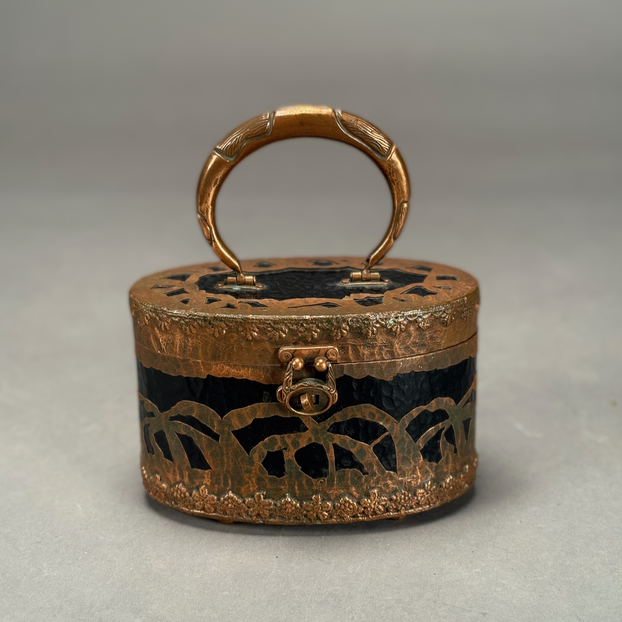 Home / ANTIQUE ESTATE AUCTION - FRI DECEMBER 12 AT 6 PM / LOT 140 ANTIQUE COPPER DECORATED HANDLED SMALL POCKETBOOK HAVING COPPER BALE HANDLE. 4-1/2”(H), 6-1/2”(W), 3-3/4”(D) LOT 140 ANTIQUE COPPER DECORATED HANDLED SMALL POCKETBOOK HAVING COPPER BALE HANDLE. 4-1/2”(H), 6-1/2”(W), 3-3/4”(D) Place a Bid Category: ANTIQUE ESTATE AUCTION - FRI DECEMBER 12 AT 6 PM Tag: auction Related products LOT 006 FINE PAIR OF FANCY STERLING SILVER CANDLESTICKS, SHEFFIELD, 1903-4 WITH MAKER’S MARK ‘HE LD’, 12″(H) LOT 007 FIXED HANDLED STERLING SILVER LOW BASKET MARKED BIGELOW, KENNARD & CO. 5-1/2″(H), 10-1/2″(D), 9.8 OZT LOT 005 PAIR OF STERLING SILVER CANDELABRAS BY ARROWSMITH, WEIGHTED IN 2 PARTS. 14-1/2″(H) (1 REPAIRED) LOT 013 3 PCS OF STERLING SILVER: (1) OVAL DEEP SERVING DISH BY E. CALDWELL & CO, 10 X 6-1/2. (2) PORRINGER BY DOMINICK & HAFF, 7″. (3) PORRINGER BY RWM, 6″. 21.8 OZT