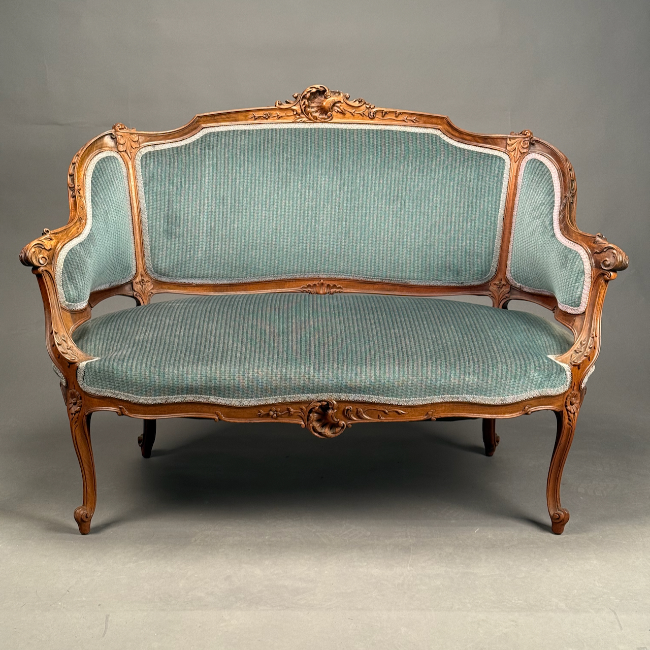 Home / ANTIQUE ESTATE AUCTION - FRI DECEMBER 12 AT 6 PM / LOT 141 FINE CARVED FRENCH STYLE UPHOLSTERED SETTEE. 34”(H), 49”(W), 26”(D) LOT 141 FINE CARVED FRENCH STYLE UPHOLSTERED SETTEE. 34”(H), 49”(W), 26”(D) Place a Bid Category: ANTIQUE ESTATE AUCTION - FRI DECEMBER 12 AT 6 PM Tag: auction Related products LOT 003 PAIR OF STERLING SILVER PORRINGERS BY GEBELEIN, BOSTON. 7″(L), 4-3/4 BOWL, 12 OZT LOT 024 STEPHEN G. MANIATTY, ‘OCTOBERS GIFT’, OIL ON CANVAS, SIGNED LOWER RIGHT, FRAMED. 34 X 25 LOT 013 3 PCS OF STERLING SILVER: (1) OVAL DEEP SERVING DISH BY E. CALDWELL & CO, 10 X 6-1/2. (2) PORRINGER BY DOMINICK & HAFF, 7″. (3) PORRINGER BY RWM, 6″. 21.8 OZT LOT 022 STEPHEN G. MANIATTY, ‘BUCKET OF POSIES’, OIL ON CANVAS, SIGNED LOWER RIGHT, FRAMED. 38 X 36