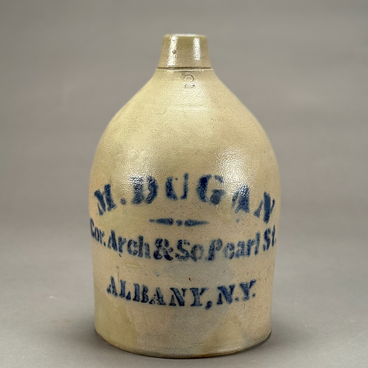 Home / ANTIQUE AUCTION - FRI NOVEMBER 7 AT 6 PM / LOT 141 TWO GALLON STONEWARE JUG WITH STENCILED NAME “M. DUGAN/COR. ARCH & 50 PEARL ST/ALBANY, N.Y. 14-1/2″(H) LOT 141 TWO GALLON STONEWARE JUG WITH STENCILED NAME “M. DUGAN/COR. ARCH & 50 PEARL ST/ALBANY, N.Y. 14-1/2″(H) Place a Bid Category: ANTIQUE AUCTION - FRI NOVEMBER 7 AT 6 PM Tag: auction Related products LOT 006 FINE PAIR OF FANCY STERLING SILVER CANDLESTICKS, SHEFFIELD, 1903-4 WITH MAKER’S MARK ‘HE LD’, 12″(H) LOT 013 3 PCS OF STERLING SILVER: (1) OVAL DEEP SERVING DISH BY E. CALDWELL & CO, 10 X 6-1/2. (2) PORRINGER BY DOMINICK & HAFF, 7″. (3) PORRINGER BY RWM, 6″. 21.8 OZT LOT 008 11 STERLING SILVER PLATES BY GORHAM. 6″(D), 27.8 OZT LOT 023 STEPHEN G. MANIATTY, ‘SAWMILL’, OIL ON CANVAS, SIGNED LOWER RIGHT, FRAMED WITH AN AWARD PLAQUE “GRUMBACHER ARTISTS MATERIAL AWARD/GRAND NATIONAL EXHIBITION/NEW YORK CITY – 1965”. 20 X 30