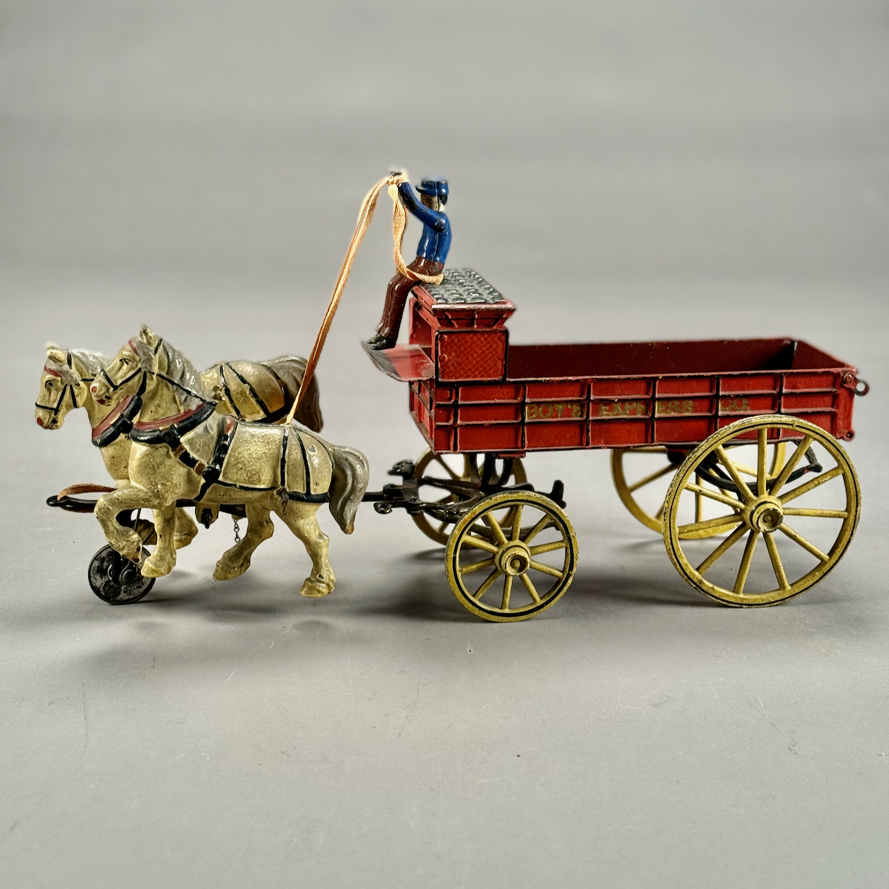 Home / ANTIQUE ESTATE AUCTION - FRI JANUARY 30 AT 6 PM / LOT 143 ANTIQUE CAST IRON PRATT & LETCHWORTH HORSE DRAWN BOY’S EXPRESS WAGON, 2 ARTICULATED HORSES, DRIVER, AND STENCILED SIDE. 17″(L) LOT 143 ANTIQUE CAST IRON PRATT & LETCHWORTH HORSE DRAWN BOY’S EXPRESS WAGON, 2 ARTICULATED HORSES, DRIVER, AND STENCILED SIDE. 17″(L) Place a Bid Category: ANTIQUE ESTATE AUCTION - FRI JANUARY 30 AT 6 PM Tag: auction Related products LOT 006 FINE PAIR OF FANCY STERLING SILVER CANDLESTICKS, SHEFFIELD, 1903-4 WITH MAKER’S MARK ‘HE LD’, 12″(H) LOT 010 2 STERLING SILVER SHAKERS, ONE 6″(H) WITH BLURRED ENGLISH HALLMARKS, THE OTHER 6-1/2″(H) MARKED STERLING. 9 OZT LOT 016 6 PCS OF STERLING SILVER: (1) 6″(D) PLATE BY TOWLE. (2) 3-1/2 FOOTED CREAMER BY POOLE. (3) 4″(D) FOOTED BOWL BY SHREVE, CRUMP & LOW CO (4) 7″(L) FOOTED GRAVY BY J.E. CALDWELL & CO (5) 4″ CREAMER BY DOMINICK & HAFF (6) 6-3/4″(W) DISH BY TOWLE. 25.2 OZT LOT 008 11 STERLING SILVER PLATES BY GORHAM. 6″(D), 27.8 OZT