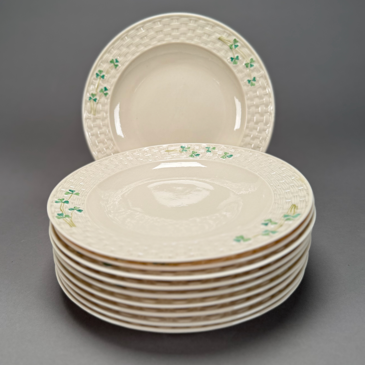 Home / OCTOBER 3 AT 6 PM / LOT 143 TEN BELLEEK GREEN MARK DINNER PLATES IN THE SHAMROCK PATTERN. 10-1/2″(D) LOT 143 TEN BELLEEK GREEN MARK DINNER PLATES IN THE SHAMROCK PATTERN. 10-1/2″(D) Place a Bid Categories: ANTIQUE AUCTION - FRI OCTOBER 3 AT 6 PM, OCTOBER 3 AT 6 PM Tag: auction Related products LOT 018 COIN SILVER HANDLED CUP, PROBABLY FREEMAN & WALLIN, PHILADELPHIA, CIRCA 1850. 4″(H), 3.6 OZT. LOT 015 42 PC STERLING FLATWARE SET BY LUNT IN THE ‘WILLIAM & MARY’ PATTERN, NO MONOGRAM. 34.5 OZT (W/O 12 KNIVES) LOT 005 PAIR OF STERLING SILVER CANDELABRAS BY ARROWSMITH, WEIGHTED IN 2 PARTS. 14-1/2″(H) (1 REPAIRED) LOT 001 PAIR OF STERLING SILVER COLUMN CANDLESTICKS BY GORHAM MARKED A3207 EACH HAVING REMOVABLE BOBECHES. 10-1/4″(H)