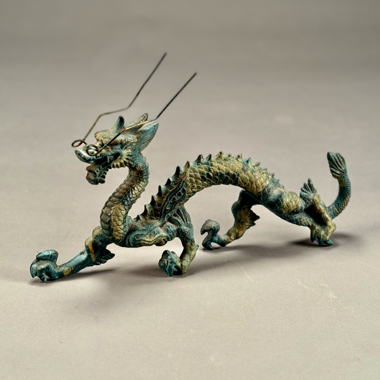 Home / ANTIQUE ESTATE AUCTION - FRI MARCH 27 AT 6 PM / LOT 146 CAST IRON DRAGON FIGURE WITH GOLD AND GREEN PAINT. 8-1/2″(H), 14″(L) LOT 146 CAST IRON DRAGON FIGURE WITH GOLD AND GREEN PAINT. 8-1/2″(H), 14″(L) Place a Bid Category: ANTIQUE ESTATE AUCTION - FRI MARCH 27 AT 6 PM Tag: auction Related products LOT 014 PAIR OF STERLING SILVER 2 HANDLED PLATES BY WEBSTER MARKED ‘6613’, NO MONOGRAM, 10-1/2 AT WIDEST, 21.3 OZT LOT 004 133 PC STERLING SILVER FLATWARE SET IN THE “KING PATTERN. 190 OZT (EXCLUDING 12 KNIVES), MONOGRAMMED LOT 010 2 STERLING SILVER SHAKERS, ONE 6″(H) WITH BLURRED ENGLISH HALLMARKS, THE OTHER 6-1/2″(H) MARKED STERLING. 9 OZT LOT 024 STEPHEN G. MANIATTY, ‘OCTOBERS GIFT’, OIL ON CANVAS, SIGNED LOWER RIGHT, FRAMED. 34 X 25