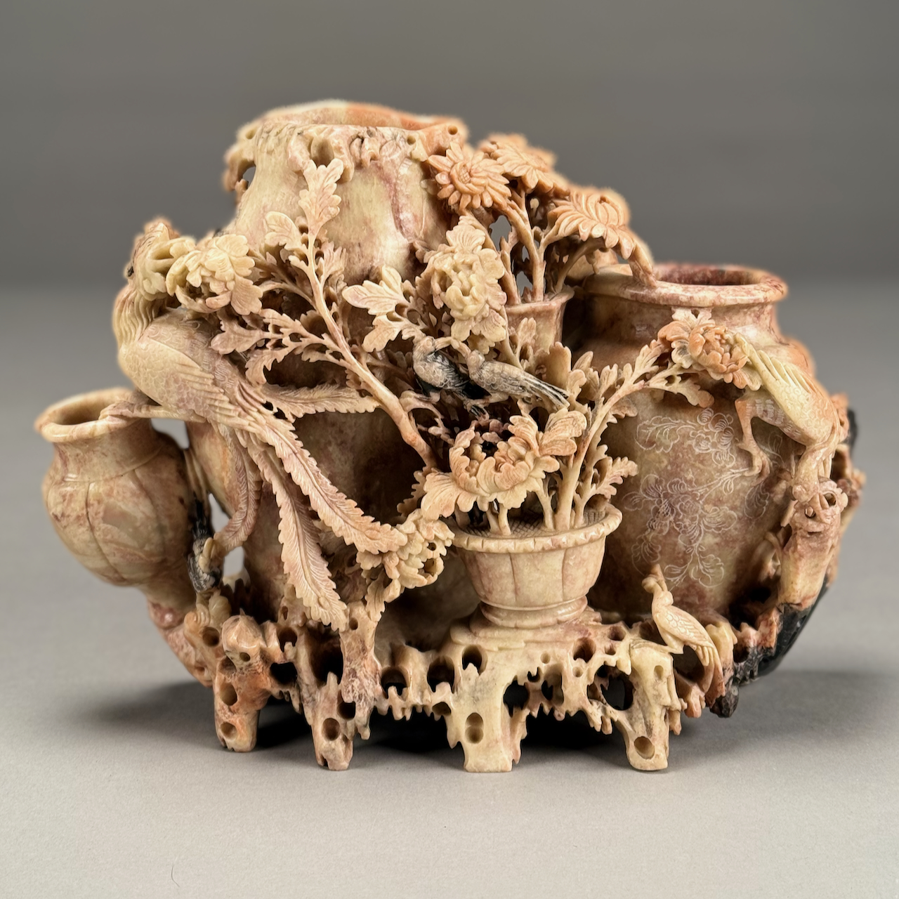 Home / ANTIQUE ESTATE AUCTION - FRI MARCH 27 AT 6 PM / LOT 148 CARVED SOAPSTONE SCULPTURE OF VASES AND FLOWERS WITH EXOTIC BIRDS. 9″(H), 12″(W) LOT 148 CARVED SOAPSTONE SCULPTURE OF VASES AND FLOWERS WITH EXOTIC BIRDS. 9″(H), 12″(W) Place a Bid Category: ANTIQUE ESTATE AUCTION - FRI MARCH 27 AT 6 PM Tag: auction Related products LOT 017 CONTINENTAL SILVER (.800) DRESSER BOX MARKED ON BASE ‘BEUTHNER’. 3-1/4″(H), 5-1/2″(W) X 4″(D), 8 OZT LOT 009 48 PC STERLING SILVER FLATWARE SET IN THE “KING GEORGE” PATTERN BY GORHAM, 57 OZT (WITHOUT 16 KNIVES) MONOGRAMMED LOT 022 STEPHEN G. MANIATTY, ‘BUCKET OF POSIES’, OIL ON CANVAS, SIGNED LOWER RIGHT, FRAMED. 38 X 36 LOT 021 OSCAR BERNINGHAUS, ‘THE ROAD TO TAOS’, OIL ON CANVAS, SIGNED LOWER RIGHT, GILT FRAME WITH ARTIST PLAQUE. ON REVERSE OF FRAME IS A PENNSYLVANIA ACADEMY OF THE FINE ART LABEL FOR THEIR 109TH ANNUAL ART EXHIBITION WITH TITLE AND ARTIST (1914). 24 X 36
