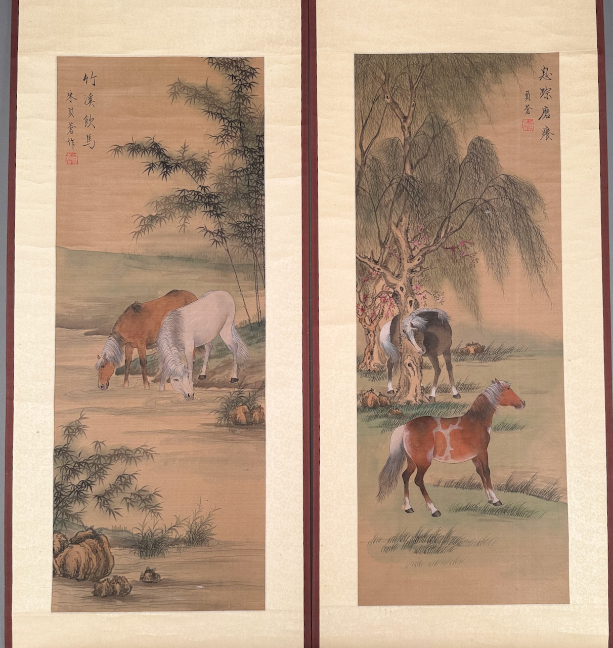 Home / ANTIQUE ESTATE AUCTION - FRI MARCH 27 AT 6 PM / LOT 149 TWO JAPANESE SCROLLS, BOTH HORSES IN LANDSCAPE, SIGNED. 55″ X 13″ LOT 149 TWO JAPANESE SCROLLS, BOTH HORSES IN LANDSCAPE, SIGNED. 55″ X 13″ Place a Bid Category: ANTIQUE ESTATE AUCTION - FRI MARCH 27 AT 6 PM Tag: auction Related products LOT 008 11 STERLING SILVER PLATES BY GORHAM. 6″(D), 27.8 OZT LOT 011 4 PCS OF ENGLISH STERLING SILVER. (1) EXPANDING TOAST RACK, 1901-1902, LONDON, 3″(H). (2) 3″ TEA CADDY SPOON, 1796-7, LONDON. (3) 7″ RETICULATED 2 HANDLED DISH, 1906-7, BIRMINGHAM. (4) 2″(H) TANKARD SHAPED MUSTARD WITH COBALT LINER, 1902-3, BIRMINGHAM. 12.6 OZT (W/O LINER) LOT 022 STEPHEN G. MANIATTY, ‘BUCKET OF POSIES’, OIL ON CANVAS, SIGNED LOWER RIGHT, FRAMED. 38 X 36 LOT 016 6 PCS OF STERLING SILVER: (1) 6″(D) PLATE BY TOWLE. (2) 3-1/2 FOOTED CREAMER BY POOLE. (3) 4″(D) FOOTED BOWL BY SHREVE, CRUMP & LOW CO (4) 7″(L) FOOTED GRAVY BY J.E. CALDWELL & CO (5) 4″ CREAMER BY DOMINICK & HAFF (6) 6-3/4″(W) DISH BY TOWLE. 25.2 OZT