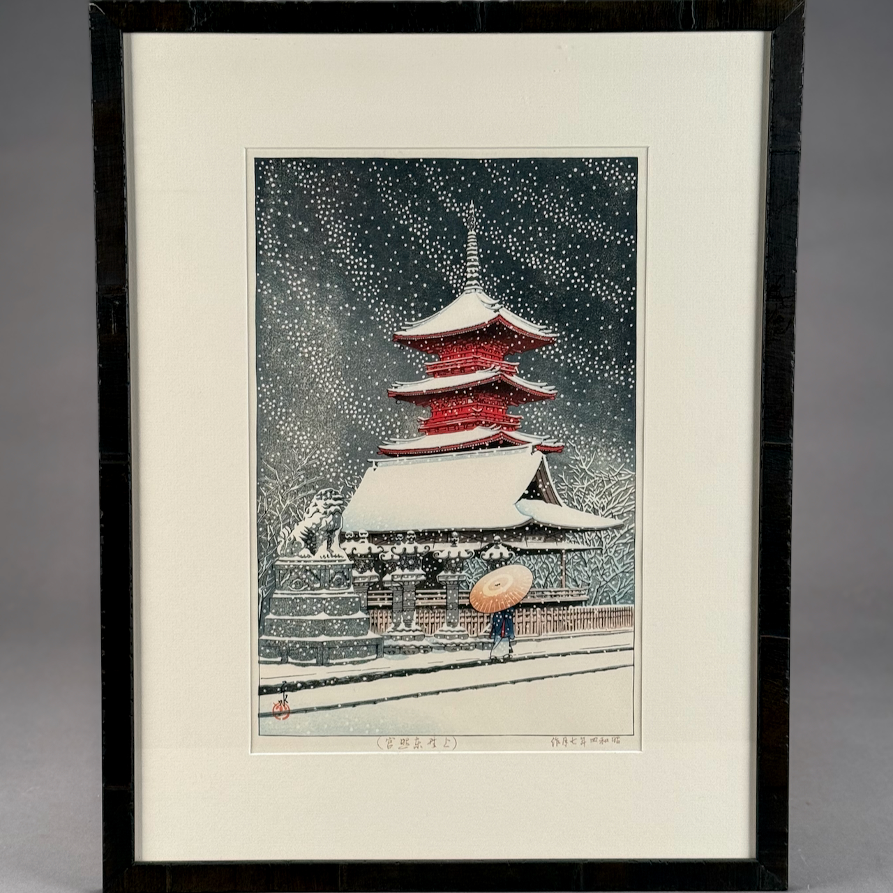 Home / ANTIQUE AUCTION - FRI NOVEMBER 7 AT 6 PM / LOT 151 KAWASE HASUI, SNOW AT UENO TOSHOGU SHRINE, WOODBLOCK PRINT, SIGNED, FRAMED. 14-1/2 X 10 SIGHT SIZE LOT 151 KAWASE HASUI, SNOW AT UENO TOSHOGU SHRINE, WOODBLOCK PRINT, SIGNED, FRAMED. 14-1/2 X 10 SIGHT SIZE Place a Bid Category: ANTIQUE AUCTION - FRI NOVEMBER 7 AT 6 PM Tag: auction Related products LOT 021 OSCAR BERNINGHAUS, ‘THE ROAD TO TAOS’, OIL ON CANVAS, SIGNED LOWER RIGHT, GILT FRAME WITH ARTIST PLAQUE. ON REVERSE OF FRAME IS A PENNSYLVANIA ACADEMY OF THE FINE ART LABEL FOR THEIR 109TH ANNUAL ART EXHIBITION WITH TITLE AND ARTIST (1914). 24 X 36 LOT 019 COIN SILVER MUG BY C. BARD & SON, PHILADELPHIA, PA, CIRCA 1850 INSCRIBED ‘ANNA CRAIG FULTON’, THE BODY HAVING REPOUSSE FLOWERS. 3-1/2″(H), 3.3 OZT LOT 007 FIXED HANDLED STERLING SILVER LOW BASKET MARKED BIGELOW, KENNARD & CO. 5-1/2″(H), 10-1/2″(D), 9.8 OZT LOT 002 3 PC STERLING SILVER TEA SET BY GORHAM CONSISTING OF 10″ TEAPOT (2441), 6-1/2″ CREAMER (2444), 6″ COVERED SUGAR (2443), 45 OZT