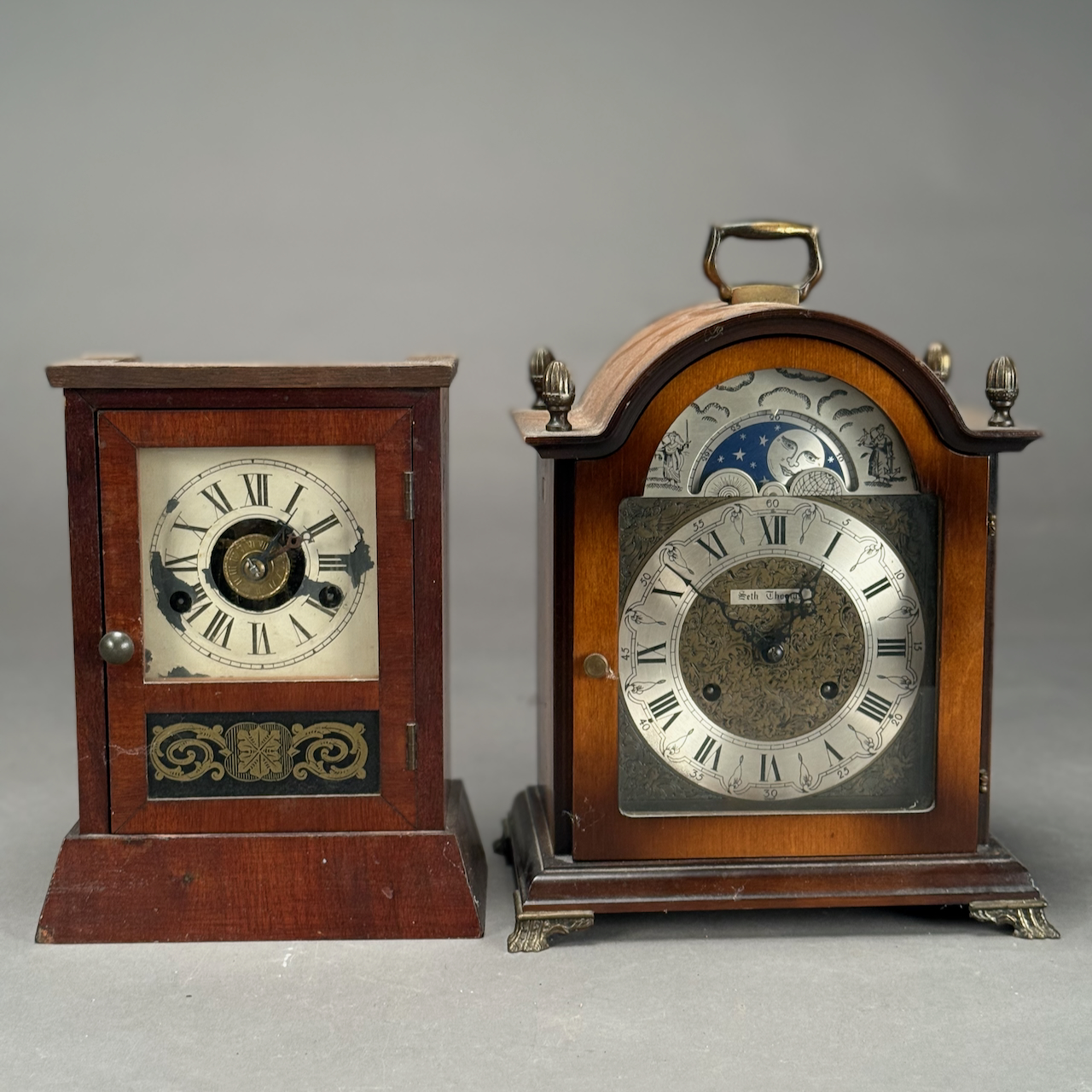 Home / ANTIQUE ESTATE AUCTION - FRI DECEMBER 12 AT 6 PM / LOT 166 TWO MANTEL CLOCKS: (1) SMALL SETH THOMAS BRACKET CLOCK, 12″(H), 9″(W), 6″(D). (2) COTTAGE CLOCK WITH ALARM, 9-1/2″(H), 7″ X 4″ LOT 166 TWO MANTEL CLOCKS: (1) SMALL SETH THOMAS BRACKET CLOCK, 12″(H), 9″(W), 6″(D). (2) COTTAGE CLOCK WITH ALARM, 9-1/2″(H), 7″ X 4″ Place a Bid Category: ANTIQUE ESTATE AUCTION - FRI DECEMBER 12 AT 6 PM Tag: auction Related products LOT 017 CONTINENTAL SILVER (.800) DRESSER BOX MARKED ON BASE ‘BEUTHNER’. 3-1/4″(H), 5-1/2″(W) X 4″(D), 8 OZT LOT 004 133 PC STERLING SILVER FLATWARE SET IN THE “KING PATTERN. 190 OZT (EXCLUDING 12 KNIVES), MONOGRAMMED LOT 018 COIN SILVER HANDLED CUP, PROBABLY FREEMAN & WALLIN, PHILADELPHIA, CIRCA 1850. 4″(H), 3.6 OZT. LOT 010 2 STERLING SILVER SHAKERS, ONE 6″(H) WITH BLURRED ENGLISH HALLMARKS, THE OTHER 6-1/2″(H) MARKED STERLING. 9 OZT