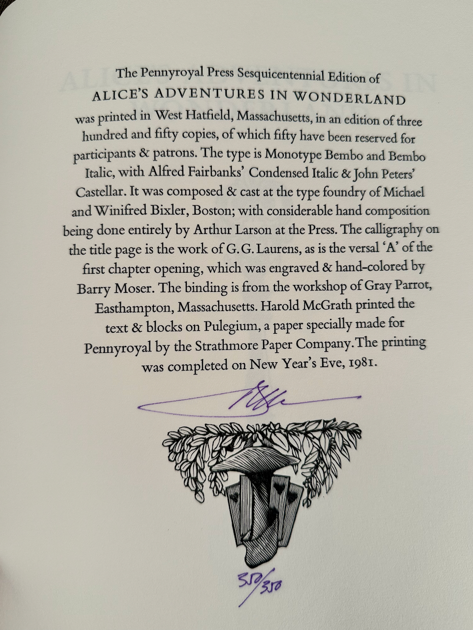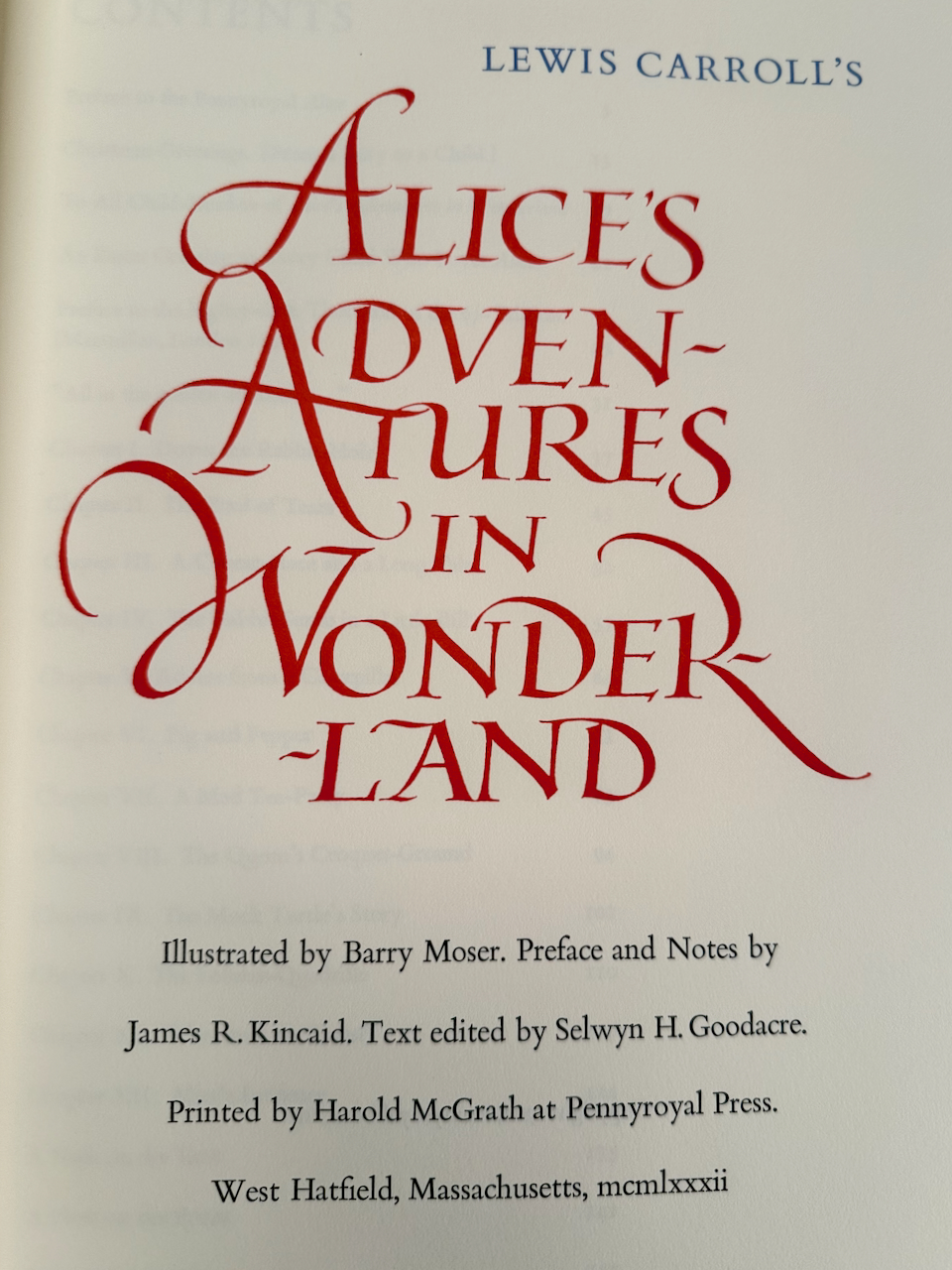 Home / ANTIQUE AUCTION - FRI NOVEMBER 7 AT 6 PM / LOT 168 BARRY MOSER, “THROUGH THE LOOKING GLASS AND WHAT ALICE FOUND THERE” CASED BOOK AND PORTFOLIO OF PRINTS. 338/350, SIGNED. 17-1/2 X 11-3/4 LOT 168 BARRY MOSER, “THROUGH THE LOOKING GLASS AND WHAT ALICE FOUND THERE” CASED BOOK AND PORTFOLIO OF PRINTS. 338/350, SIGNED. 17-1/2 X 11-3/4 Place a Bid Category: ANTIQUE AUCTION - FRI NOVEMBER 7 AT 6 PM Tag: auction Related products LOT 005 PAIR OF STERLING SILVER CANDELABRAS BY ARROWSMITH, WEIGHTED IN 2 PARTS. 14-1/2″(H) (1 REPAIRED) LOT 013 3 PCS OF STERLING SILVER: (1) OVAL DEEP SERVING DISH BY E. CALDWELL & CO, 10 X 6-1/2. (2) PORRINGER BY DOMINICK & HAFF, 7″. (3) PORRINGER BY RWM, 6″. 21.8 OZT LOT 006 FINE PAIR OF FANCY STERLING SILVER CANDLESTICKS, SHEFFIELD, 1903-4 WITH MAKER’S MARK ‘HE LD’, 12″(H) LOT 016 6 PCS OF STERLING SILVER: (1) 6″(D) PLATE BY TOWLE. (2) 3-1/2 FOOTED CREAMER BY POOLE. (3) 4″(D) FOOTED BOWL BY SHREVE, CRUMP & LOW CO (4) 7″(L) FOOTED GRAVY BY J.E. CALDWELL & CO (5) 4″ CREAMER BY DOMINICK & HAFF (6) 6-3/4″(W) DISH BY TOWLE. 25.2 OZT