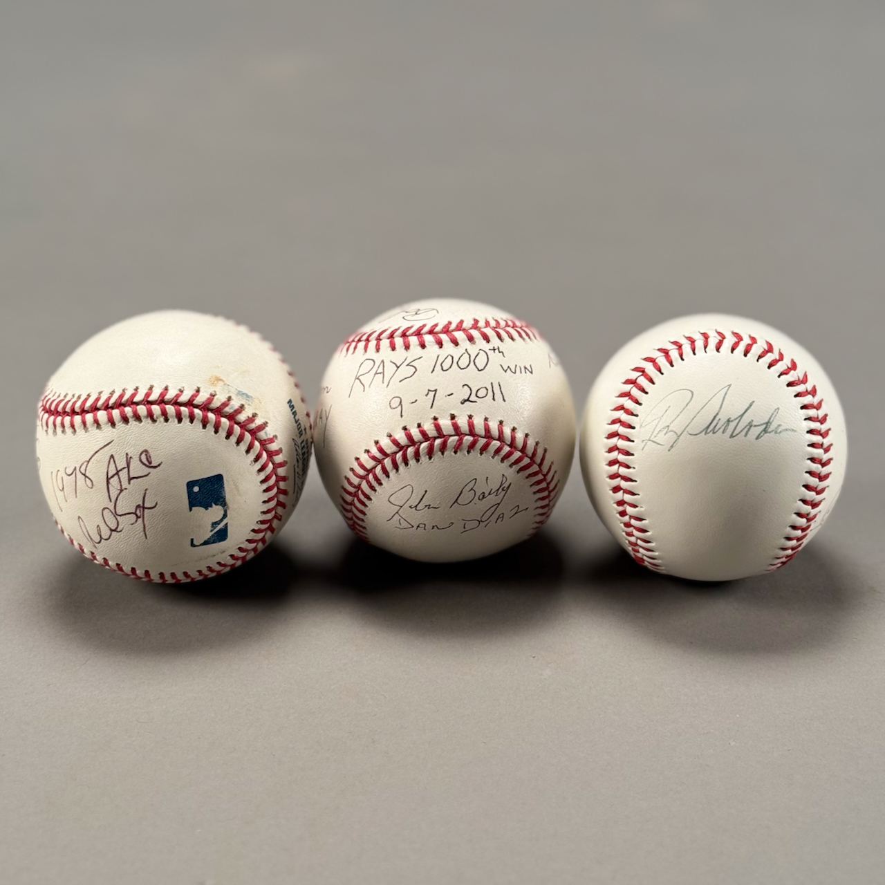 Home / ANTIQUE ESTATE AUCTION - FRI MARCH 27 AT 6 PM / LOT 169 THREE AUTOGRAPHED BASEBALLS: (1) TAMPA BAY RAYS BALL W/2 SIGNATURES. (2) RED SOX BERNIE CARBO 1978. (3) RAYS 1000TH WIN 9-7-2011, 7 AUTOGRAPHS OF THE RIGHT FIELD CREW LOT 169 THREE AUTOGRAPHED BASEBALLS: (1) TAMPA BAY RAYS BALL W/2 SIGNATURES. (2) RED SOX BERNIE CARBO 1978. (3) RAYS 1000TH WIN 9-7-2011, 7 AUTOGRAPHS OF THE RIGHT FIELD CREW Place a Bid Category: ANTIQUE ESTATE AUCTION - FRI MARCH 27 AT 6 PM Tag: auction Related products LOT 007 FIXED HANDLED STERLING SILVER LOW BASKET MARKED BIGELOW, KENNARD & CO. 5-1/2″(H), 10-1/2″(D), 9.8 OZT LOT 006 FINE PAIR OF FANCY STERLING SILVER CANDLESTICKS, SHEFFIELD, 1903-4 WITH MAKER’S MARK ‘HE LD’, 12″(H) LOT 001 PAIR OF STERLING SILVER COLUMN CANDLESTICKS BY GORHAM MARKED A3207 EACH HAVING REMOVABLE BOBECHES. 10-1/4″(H) LOT 010 2 STERLING SILVER SHAKERS, ONE 6″(H) WITH BLURRED ENGLISH HALLMARKS, THE OTHER 6-1/2″(H) MARKED STERLING. 9 OZT