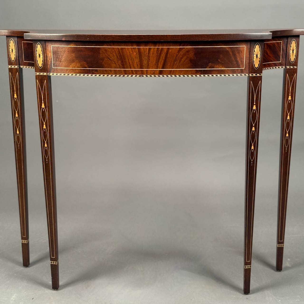 Home / ANTIQUE AUCTION - FRI NOVEMBER 7 AT 6 PM / LOT 177 INLAID FEDERAL STYLE MAHOGANY CONSOLE TABLE BY STICKLEY, HAVING A BANDED EDGE SHAPED TOP AND INLAID LEGS. 32-1/4”(H) 38”(W) 12”(D) LOT 177 INLAID FEDERAL STYLE MAHOGANY CONSOLE TABLE BY STICKLEY, HAVING A BANDED EDGE SHAPED TOP AND INLAID LEGS. 32-1/4”(H) 38”(W) 12”(D) Place a Bid Category: ANTIQUE AUCTION - FRI NOVEMBER 7 AT 6 PM Tag: auction Related products LOT 008 11 STERLING SILVER PLATES BY GORHAM. 6″(D), 27.8 OZT LOT 009 48 PC STERLING SILVER FLATWARE SET IN THE “KING GEORGE” PATTERN BY GORHAM, 57 OZT (WITHOUT 16 KNIVES) MONOGRAMMED LOT 001 PAIR OF STERLING SILVER COLUMN CANDLESTICKS BY GORHAM MARKED A3207 EACH HAVING REMOVABLE BOBECHES. 10-1/4″(H) LOT 006 FINE PAIR OF FANCY STERLING SILVER CANDLESTICKS, SHEFFIELD, 1903-4 WITH MAKER’S MARK ‘HE LD’, 12″(H)