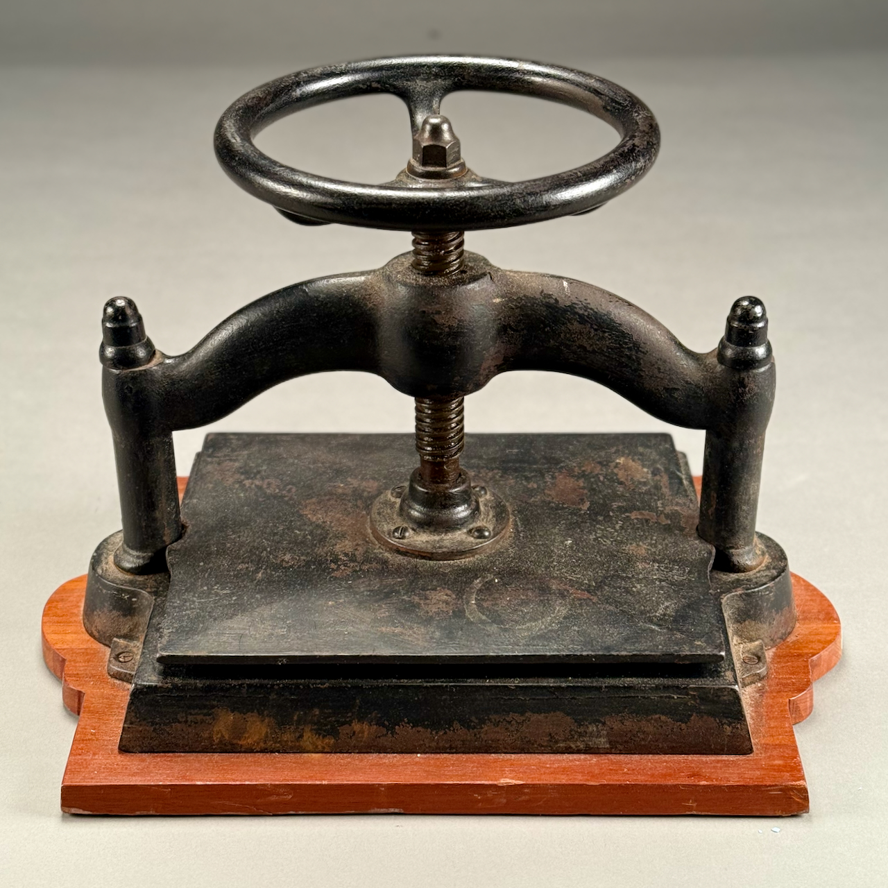 Home / ANTIQUE ESTATE AUCTION - FRI MARCH 27 AT 6 PM / LOT 183 ANTIQUE CAST IRON BOOK PRESS ON WOOD BASE. 13-1/2”(H), 13 X 20 LOT 183 ANTIQUE CAST IRON BOOK PRESS ON WOOD BASE. 13-1/2”(H), 13 X 20 Place a Bid Category: ANTIQUE ESTATE AUCTION - FRI MARCH 27 AT 6 PM Tag: auction Related products LOT 015 42 PC STERLING FLATWARE SET BY LUNT IN THE ‘WILLIAM & MARY’ PATTERN, NO MONOGRAM. 34.5 OZT (W/O 12 KNIVES) LOT 018 COIN SILVER HANDLED CUP, PROBABLY FREEMAN & WALLIN, PHILADELPHIA, CIRCA 1850. 4″(H), 3.6 OZT. LOT 016 6 PCS OF STERLING SILVER: (1) 6″(D) PLATE BY TOWLE. (2) 3-1/2 FOOTED CREAMER BY POOLE. (3) 4″(D) FOOTED BOWL BY SHREVE, CRUMP & LOW CO (4) 7″(L) FOOTED GRAVY BY J.E. CALDWELL & CO (5) 4″ CREAMER BY DOMINICK & HAFF (6) 6-3/4″(W) DISH BY TOWLE. 25.2 OZT LOT 022 STEPHEN G. MANIATTY, ‘BUCKET OF POSIES’, OIL ON CANVAS, SIGNED LOWER RIGHT, FRAMED. 38 X 36