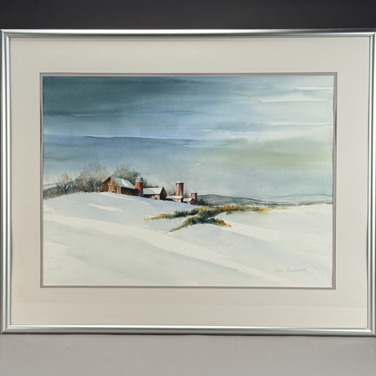 Home / ANTIQUE AUCTION - FRI NOVEMBER 7 AT 6 PM / LOT 184 JOHN TOMASETTI, SILOS IN WINTER, WATERCOLOR, SIGNED LOWER RIGHT, FRAMED. 21 X 29 SIGHT SIZE LOT 184 JOHN TOMASETTI, SILOS IN WINTER, WATERCOLOR, SIGNED LOWER RIGHT, FRAMED. 21 X 29 SIGHT SIZE Place a Bid Category: ANTIQUE AUCTION - FRI NOVEMBER 7 AT 6 PM Tag: auction Related products LOT 021 OSCAR BERNINGHAUS, ‘THE ROAD TO TAOS’, OIL ON CANVAS, SIGNED LOWER RIGHT, GILT FRAME WITH ARTIST PLAQUE. ON REVERSE OF FRAME IS A PENNSYLVANIA ACADEMY OF THE FINE ART LABEL FOR THEIR 109TH ANNUAL ART EXHIBITION WITH TITLE AND ARTIST (1914). 24 X 36 LOT 010 2 STERLING SILVER SHAKERS, ONE 6″(H) WITH BLURRED ENGLISH HALLMARKS, THE OTHER 6-1/2″(H) MARKED STERLING. 9 OZT LOT 013 3 PCS OF STERLING SILVER: (1) OVAL DEEP SERVING DISH BY E. CALDWELL & CO, 10 X 6-1/2. (2) PORRINGER BY DOMINICK & HAFF, 7″. (3) PORRINGER BY RWM, 6″. 21.8 OZT LOT 019 COIN SILVER MUG BY C. BARD & SON, PHILADELPHIA, PA, CIRCA 1850 INSCRIBED ‘ANNA CRAIG FULTON’, THE BODY HAVING REPOUSSE FLOWERS. 3-1/2″(H), 3.3 OZT