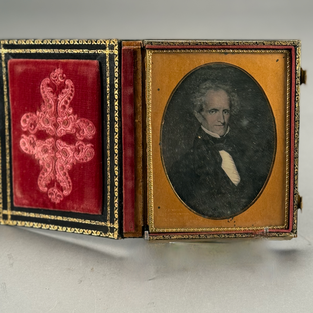 Home / ANTIQUE ESTATE AUCTION - FRI FEBRUARY 20 AT 6 PM / LOT 185 AMBROTYPE OF JOHN CLARKE (FOUNDER OF CLARKE SCHOOL FOR THE DEAF) BY J.D. WELLS, NORTHAMPTON, MA, HALF PLATE, HOUSED IN A FINE M.O.P. PAPIER-MACHE CASE. OVERALL 6-1/4 X 5 LOT 185 AMBROTYPE OF JOHN CLARKE (FOUNDER OF CLARKE SCHOOL FOR THE DEAF) BY J.D. WELLS, NORTHAMPTON, MA, HALF PLATE, HOUSED IN A FINE M.O.P. PAPIER-MACHE CASE. OVERALL 6-1/4 X 5 Place a Bid Category: ANTIQUE ESTATE AUCTION - FRI FEBRUARY 20 AT 6 PM Tag: auction Related products LOT 002 3 PC STERLING SILVER TEA SET BY GORHAM CONSISTING OF 10″ TEAPOT (2441), 6-1/2″ CREAMER (2444), 6″ COVERED SUGAR (2443), 45 OZT LOT 001 PAIR OF STERLING SILVER COLUMN CANDLESTICKS BY GORHAM MARKED A3207 EACH HAVING REMOVABLE BOBECHES. 10-1/4″(H) LOT 016 6 PCS OF STERLING SILVER: (1) 6″(D) PLATE BY TOWLE. (2) 3-1/2 FOOTED CREAMER BY POOLE. (3) 4″(D) FOOTED BOWL BY SHREVE, CRUMP & LOW CO (4) 7″(L) FOOTED GRAVY BY J.E. CALDWELL & CO (5) 4″ CREAMER BY DOMINICK & HAFF (6) 6-3/4″(W) DISH BY TOWLE. 25.2 OZT LOT 012 2 SMALL STERLING SILVER TRAYS. (1) 6″ SQUARE BY DOMINICK & HAFF (2) 7-1/2 X 5-1/2 OVAL FOOTED TRAY BY J.E. CALDWELL & CO, BOTH MONOGRAMMED. 11.7 OZT