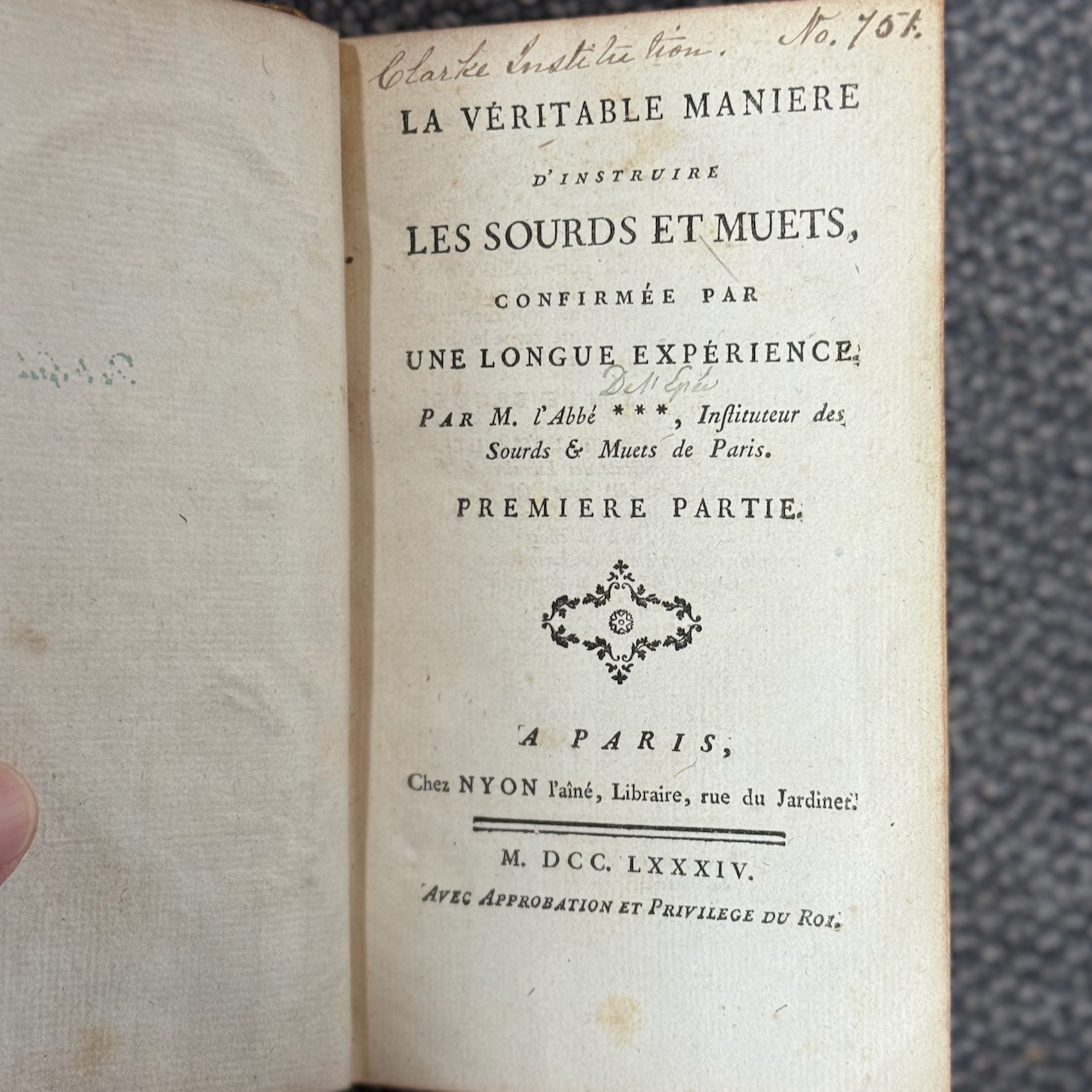 Home / ANTIQUE ESTATE AUCTION - FRI FEBRUARY 20 AT 6 PM / LOT 193 * LA VERITABLE MANIERE D’INSTRUIRE LES SOURDS ET MUETS. Par M. L’Abbe***. (Paris, 1784). LOT 193 * LA VERITABLE MANIERE D’INSTRUIRE LES SOURDS ET MUETS. Par M. L’Abbe***. (Paris, 1784). Place a Bid Category: ANTIQUE ESTATE AUCTION - FRI FEBRUARY 20 AT 6 PM Tag: auction Related products LOT 023 STEPHEN G. MANIATTY, ‘SAWMILL’, OIL ON CANVAS, SIGNED LOWER RIGHT, FRAMED WITH AN AWARD PLAQUE “GRUMBACHER ARTISTS MATERIAL AWARD/GRAND NATIONAL EXHIBITION/NEW YORK CITY – 1965”. 20 X 30 LOT 012 2 SMALL STERLING SILVER TRAYS. (1) 6″ SQUARE BY DOMINICK & HAFF (2) 7-1/2 X 5-1/2 OVAL FOOTED TRAY BY J.E. CALDWELL & CO, BOTH MONOGRAMMED. 11.7 OZT LOT 004 133 PC STERLING SILVER FLATWARE SET IN THE “KING PATTERN. 190 OZT (EXCLUDING 12 KNIVES), MONOGRAMMED LOT 024 STEPHEN G. MANIATTY, ‘OCTOBERS GIFT’, OIL ON CANVAS, SIGNED LOWER RIGHT, FRAMED. 34 X 25