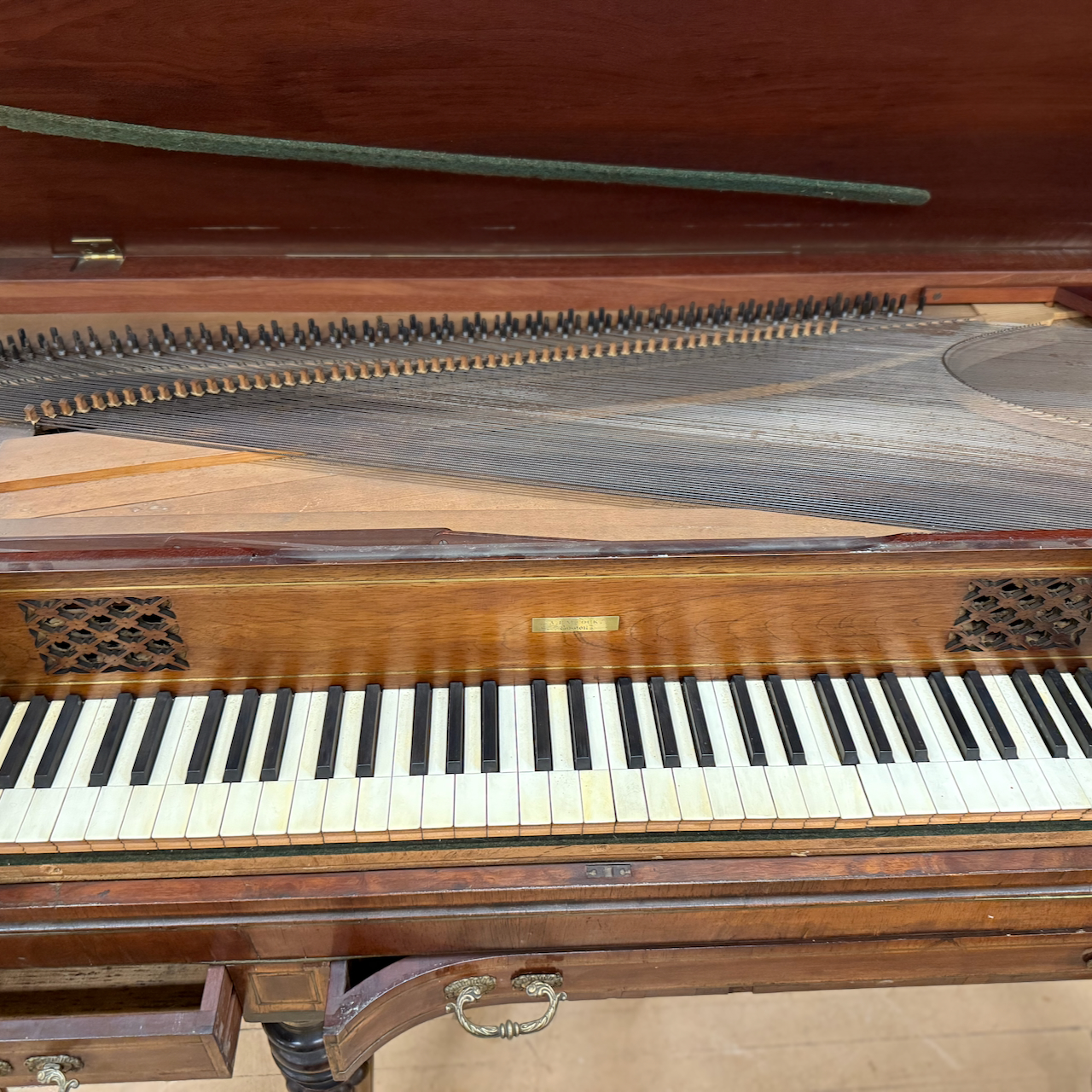 Home / ANTIQUE ESTATE AUCTION - FRI JANUARY 30 AT 6 PM / LOT 194 A.BABCOCK, BOSTON ANTIQUE PIANOFORTES, ALPHEUS BABCOCK (1785-1842) BOSTON, PATENTED THE FIRST CAST IRON FRAME FOR SQUARE PIANO IN 1825. MAHOGANY INLAID CASE WITH CARVED TURNED LEGS. 35”(H), 67”(W), 26”(D) LOT 194 A.BABCOCK, BOSTON ANTIQUE PIANOFORTES, ALPHEUS BABCOCK (1785-1842) BOSTON, PATENTED THE FIRST CAST IRON FRAME FOR SQUARE PIANO IN 1825. MAHOGANY INLAID CASE WITH CARVED TURNED LEGS. 35”(H), 67”(W), 26”(D) Place a Bid Category: ANTIQUE ESTATE AUCTION - FRI JANUARY 30 AT 6 PM Tag: auction Related products LOT 003 PAIR OF STERLING SILVER PORRINGERS BY GEBELEIN, BOSTON. 7″(L), 4-3/4 BOWL, 12 OZT LOT 010 2 STERLING SILVER SHAKERS, ONE 6″(H) WITH BLURRED ENGLISH HALLMARKS, THE OTHER 6-1/2″(H) MARKED STERLING. 9 OZT LOT 017 CONTINENTAL SILVER (.800) DRESSER BOX MARKED ON BASE ‘BEUTHNER’. 3-1/4″(H), 5-1/2″(W) X 4″(D), 8 OZT LOT 021 OSCAR BERNINGHAUS, ‘THE ROAD TO TAOS’, OIL ON CANVAS, SIGNED LOWER RIGHT, GILT FRAME WITH ARTIST PLAQUE. ON REVERSE OF FRAME IS A PENNSYLVANIA ACADEMY OF THE FINE ART LABEL FOR THEIR 109TH ANNUAL ART EXHIBITION WITH TITLE AND ARTIST (1914). 24 X 36