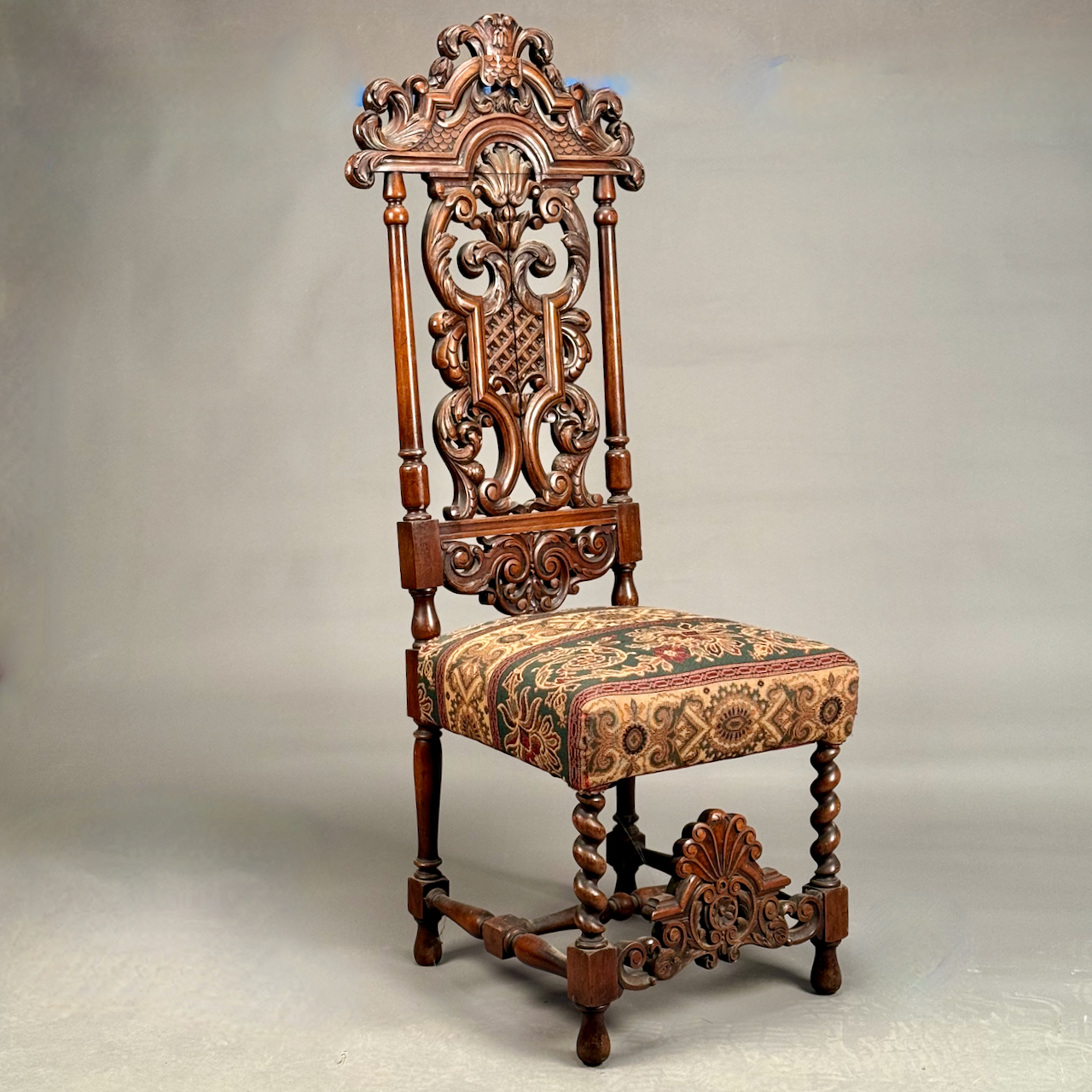 Home / ANTIQUE ESTATE AUCTION - FRI MARCH 27 AT 6 PM / LOT 201 HIGH BACK CARVED FLEMISH STYLE SIDE CHAIR WITH TAPESTRY SEAT AND CARVED FRONT STRETCHER. 54”(H) LOT 201 HIGH BACK CARVED FLEMISH STYLE SIDE CHAIR WITH TAPESTRY SEAT AND CARVED FRONT STRETCHER. 54”(H) Place a Bid Category: ANTIQUE ESTATE AUCTION - FRI MARCH 27 AT 6 PM Tag: auction Related products LOT 023 STEPHEN G. MANIATTY, ‘SAWMILL’, OIL ON CANVAS, SIGNED LOWER RIGHT, FRAMED WITH AN AWARD PLAQUE “GRUMBACHER ARTISTS MATERIAL AWARD/GRAND NATIONAL EXHIBITION/NEW YORK CITY – 1965”. 20 X 30 LOT 014 PAIR OF STERLING SILVER 2 HANDLED PLATES BY WEBSTER MARKED ‘6613’, NO MONOGRAM, 10-1/2 AT WIDEST, 21.3 OZT LOT 001 PAIR OF STERLING SILVER COLUMN CANDLESTICKS BY GORHAM MARKED A3207 EACH HAVING REMOVABLE BOBECHES. 10-1/4″(H) LOT 011 4 PCS OF ENGLISH STERLING SILVER. (1) EXPANDING TOAST RACK, 1901-1902, LONDON, 3″(H). (2) 3″ TEA CADDY SPOON, 1796-7, LONDON. (3) 7″ RETICULATED 2 HANDLED DISH, 1906-7, BIRMINGHAM. (4) 2″(H) TANKARD SHAPED MUSTARD WITH COBALT LINER, 1902-3, BIRMINGHAM. 12.6 OZT (W/O LINER)