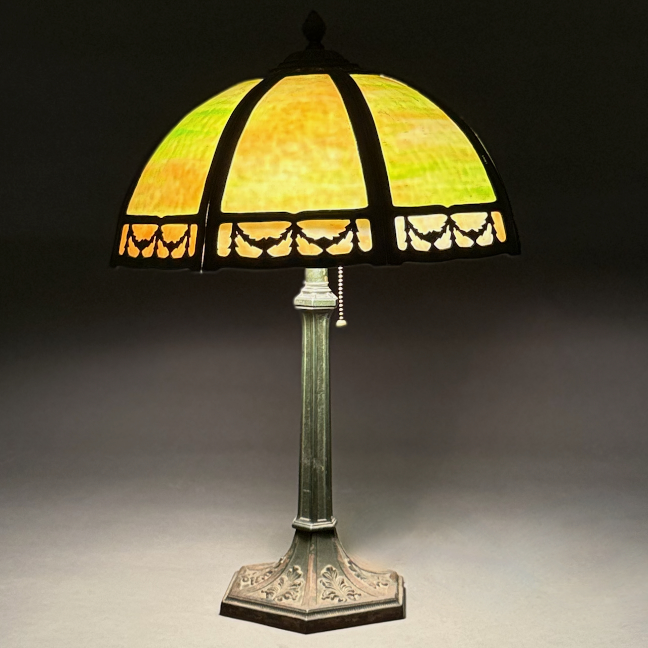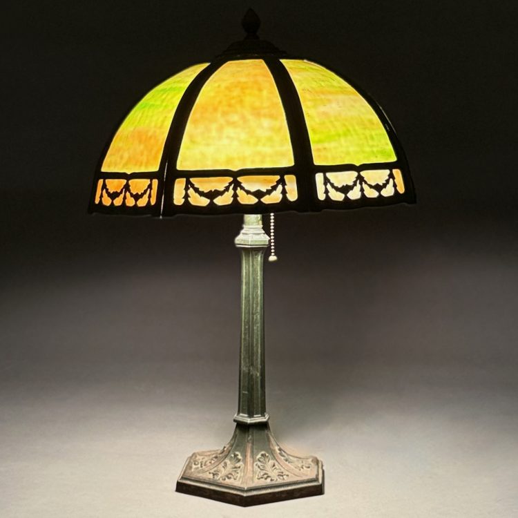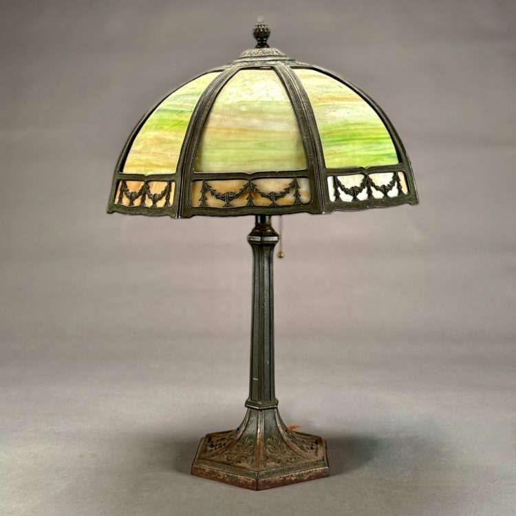 Home / ANTIQUE AUCTION - FRI OCTOBER 3 AT 6 PM / LOT 203 GREEN SLAG PANEL TABLE LAMP, THE SHADE WITH METAL DRAPERY EDGE. 23-1/2″(H), SHADE 14″(D) LOT 203 GREEN SLAG PANEL TABLE LAMP, THE SHADE WITH METAL DRAPERY EDGE. 23-1/2″(H), SHADE 14″(D) Place a Bid Categories: ANTIQUE AUCTION - FRI OCTOBER 3 AT 6 PM, OCTOBER 3 AT 6 PM Tag: auction Related products LOT 022 STEPHEN G. MANIATTY, ‘BUCKET OF POSIES’, OIL ON CANVAS, SIGNED LOWER RIGHT, FRAMED. 38 X 36 LOT 013 3 PCS OF STERLING SILVER: (1) OVAL DEEP SERVING DISH BY E. CALDWELL & CO, 10 X 6-1/2. (2) PORRINGER BY DOMINICK & HAFF, 7″. (3) PORRINGER BY RWM, 6″. 21.8 OZT LOT 006 FINE PAIR OF FANCY STERLING SILVER CANDLESTICKS, SHEFFIELD, 1903-4 WITH MAKER’S MARK ‘HE LD’, 12″(H) LOT 007 FIXED HANDLED STERLING SILVER LOW BASKET MARKED BIGELOW, KENNARD & CO. 5-1/2″(H), 10-1/2″(D), 9.8 OZT